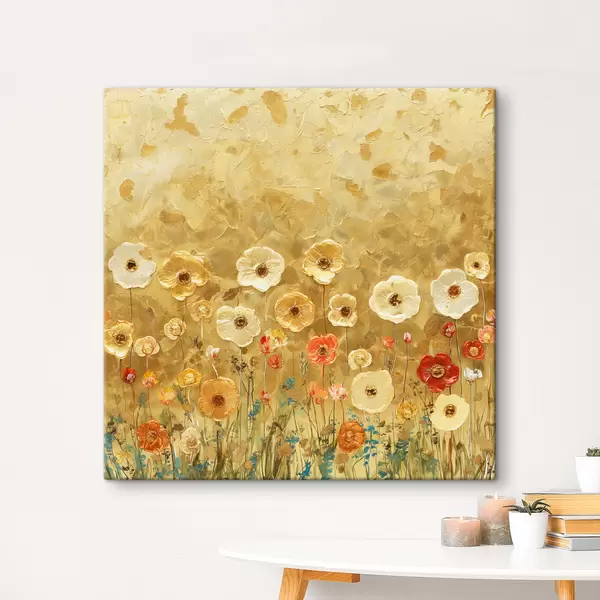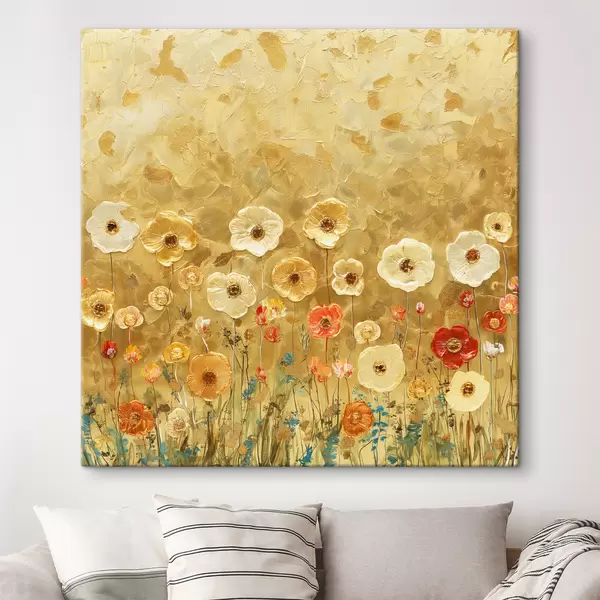 Quadri Prato in stile klimt: delicati fiori pastello con texture fuso Nr s39464