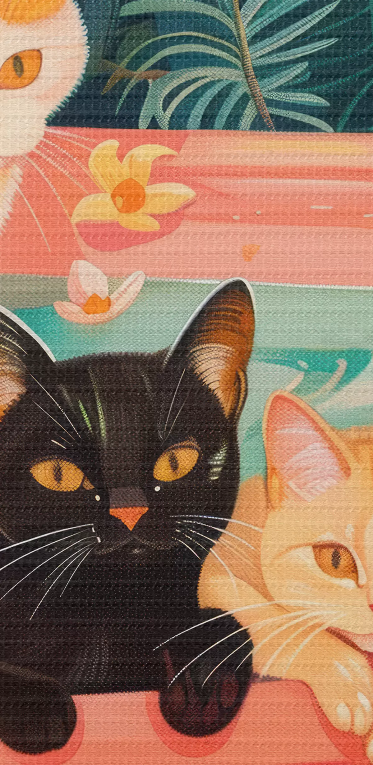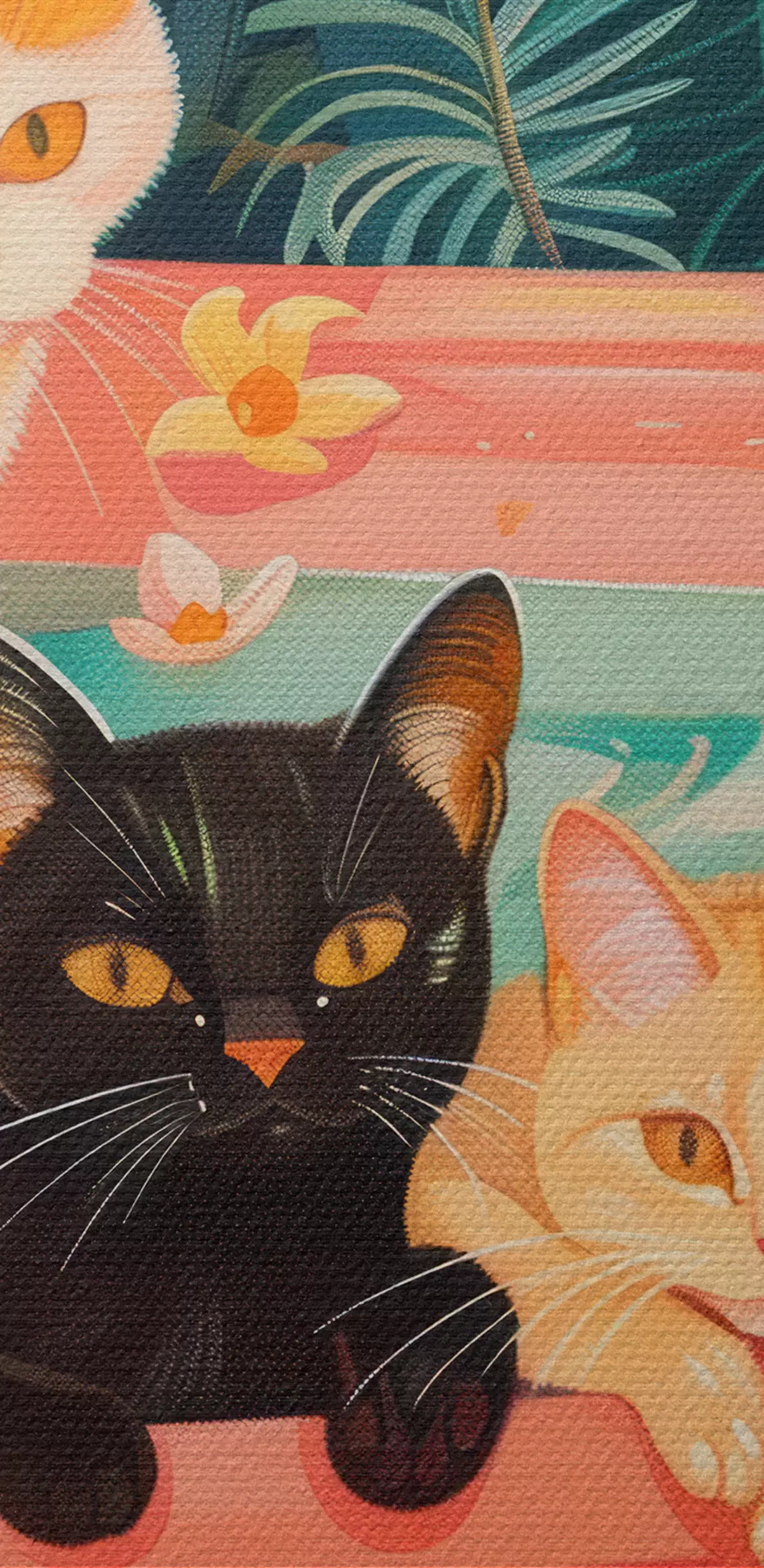Quadri Gatti in un bagno rosa con foglie verdi, atmosfera da giungla Nr s39465
