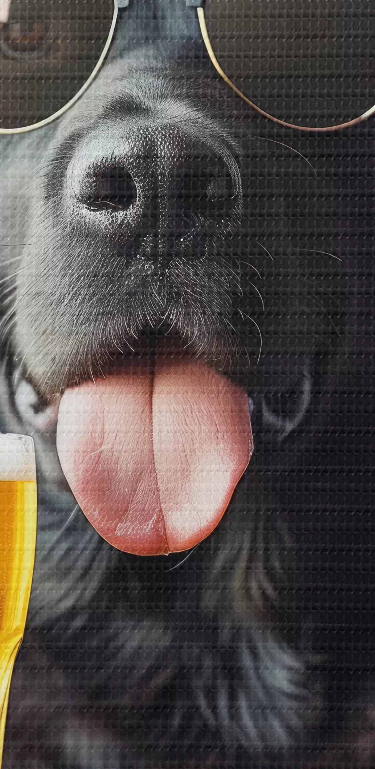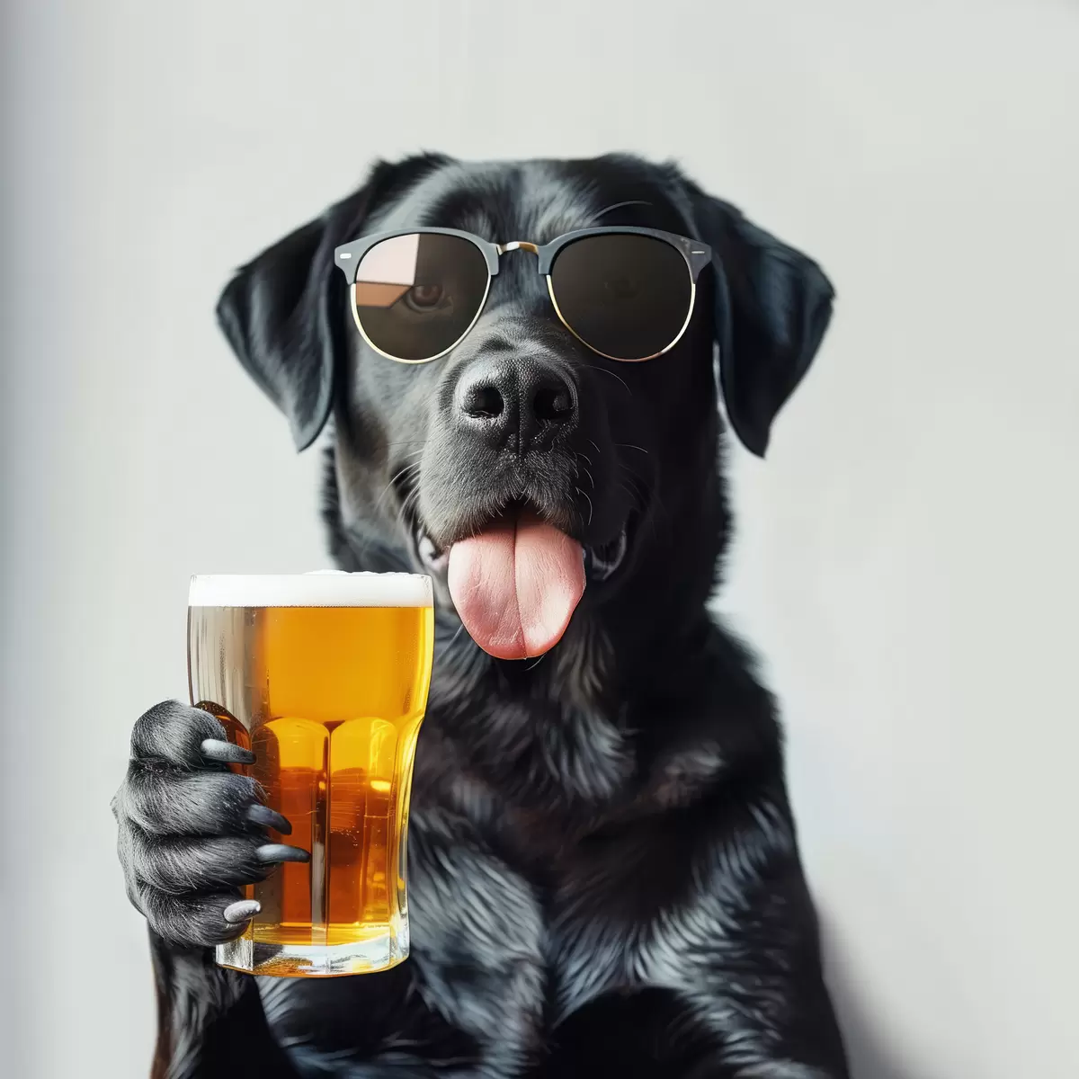 carta da parati Ritratto di un labrador nero che indossa occhiali da sole e tiene in mano una pinta di birra, guardando dritto nella telecamera nr. s39470