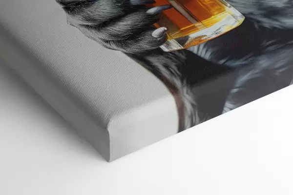 Quadri Ritratto di un labrador nero che indossa occhiali da sole e tiene in mano una pinta di birra, guardando dritto nella telecamera Nr s39470