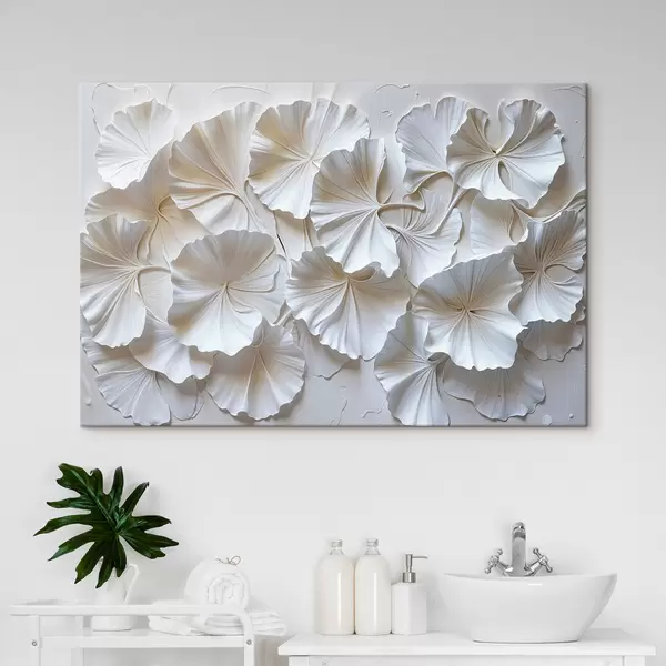 Quadri Delicati fiori bianchi disposti in un motivo naturale e organico su uno sfondo chiaro Nr s39510