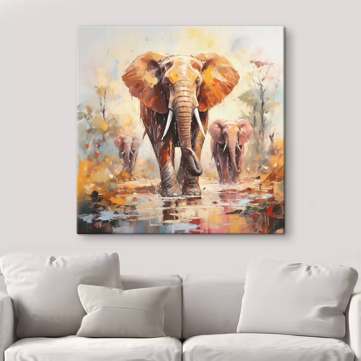 Quadri Uno stormo di elefanti nella savana, pittura a olio, arte astratta Nr s39573
