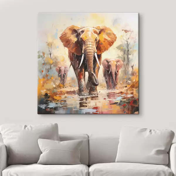 Quadri Uno stormo di elefanti nella savana, pittura a olio, arte astratta Nr s39573