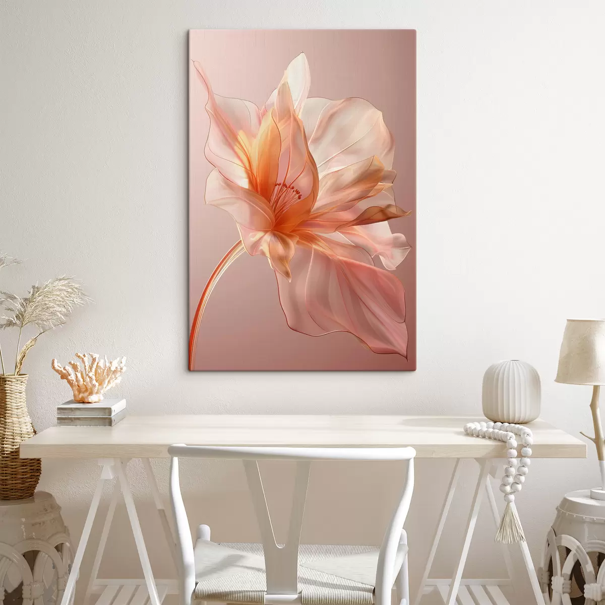 Quadri Petalo di fiore di pesco su sfondo rosa con linee fluide, minimalismo e dettagli delicati Nr s39631