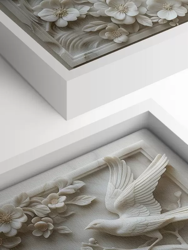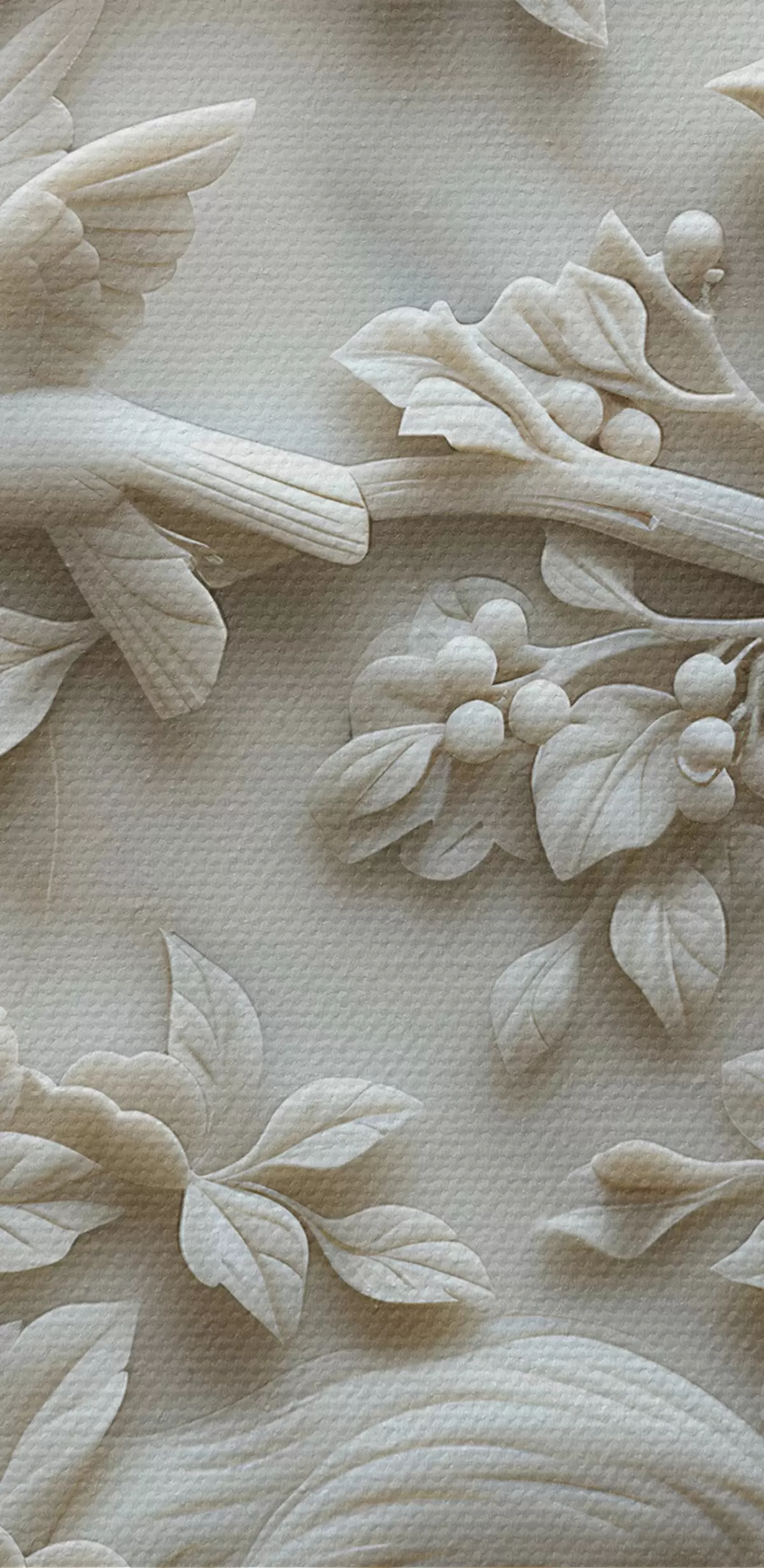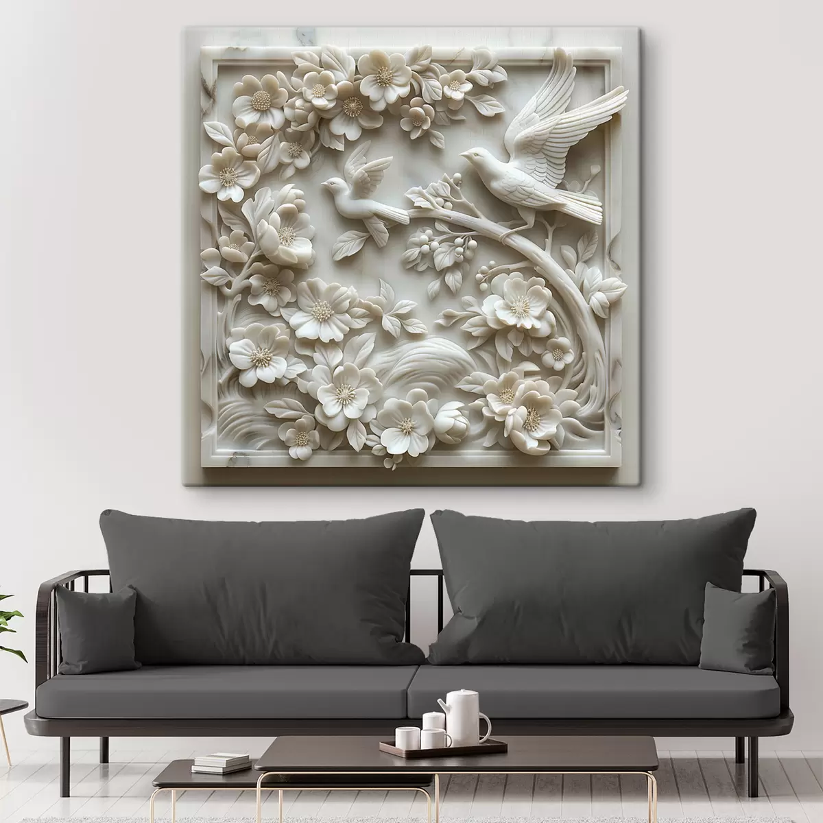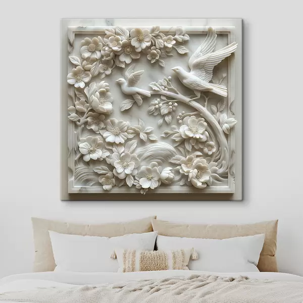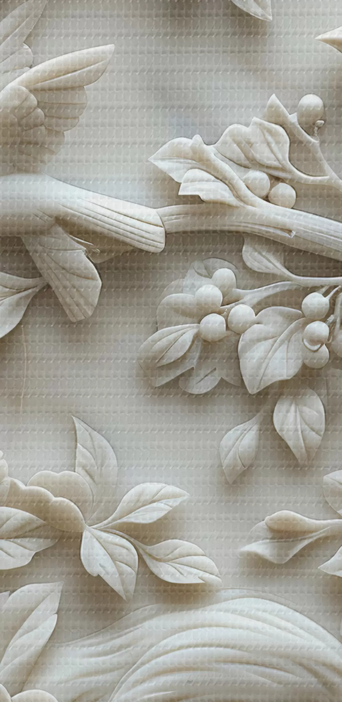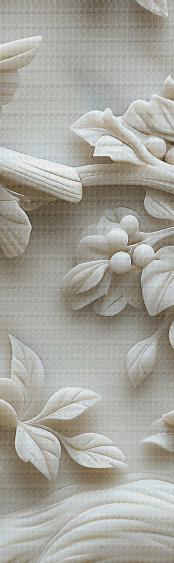 carta da parati Giardino in marmo bianco con bassorilievo di uccelli e fiori  nr. s39728