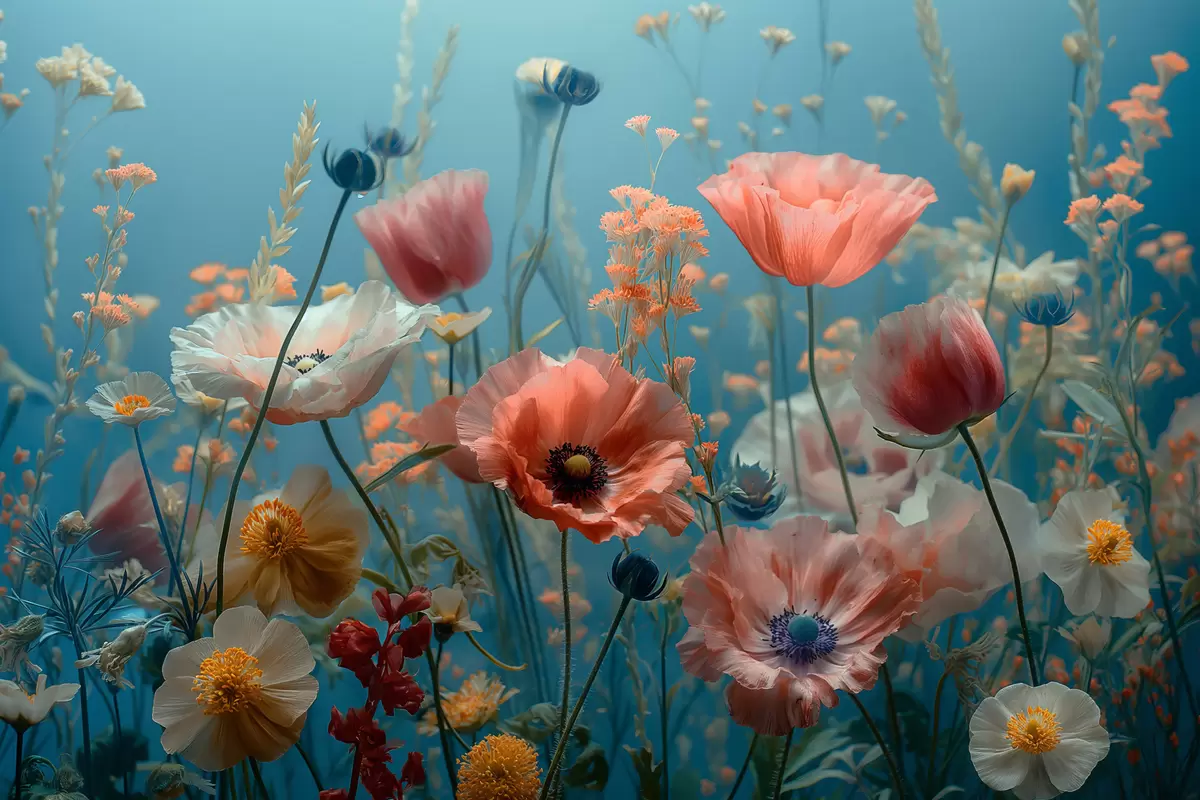 carta da parati Fiori di campo tra cui papaveri, tulipani e altro ancora nr. s39752