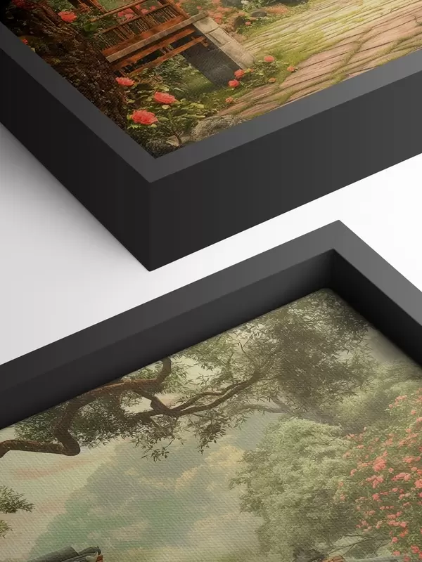 Quadri Parco giapponese con alberi e fiori in fiore, foresta, casa in legno Nr s39773