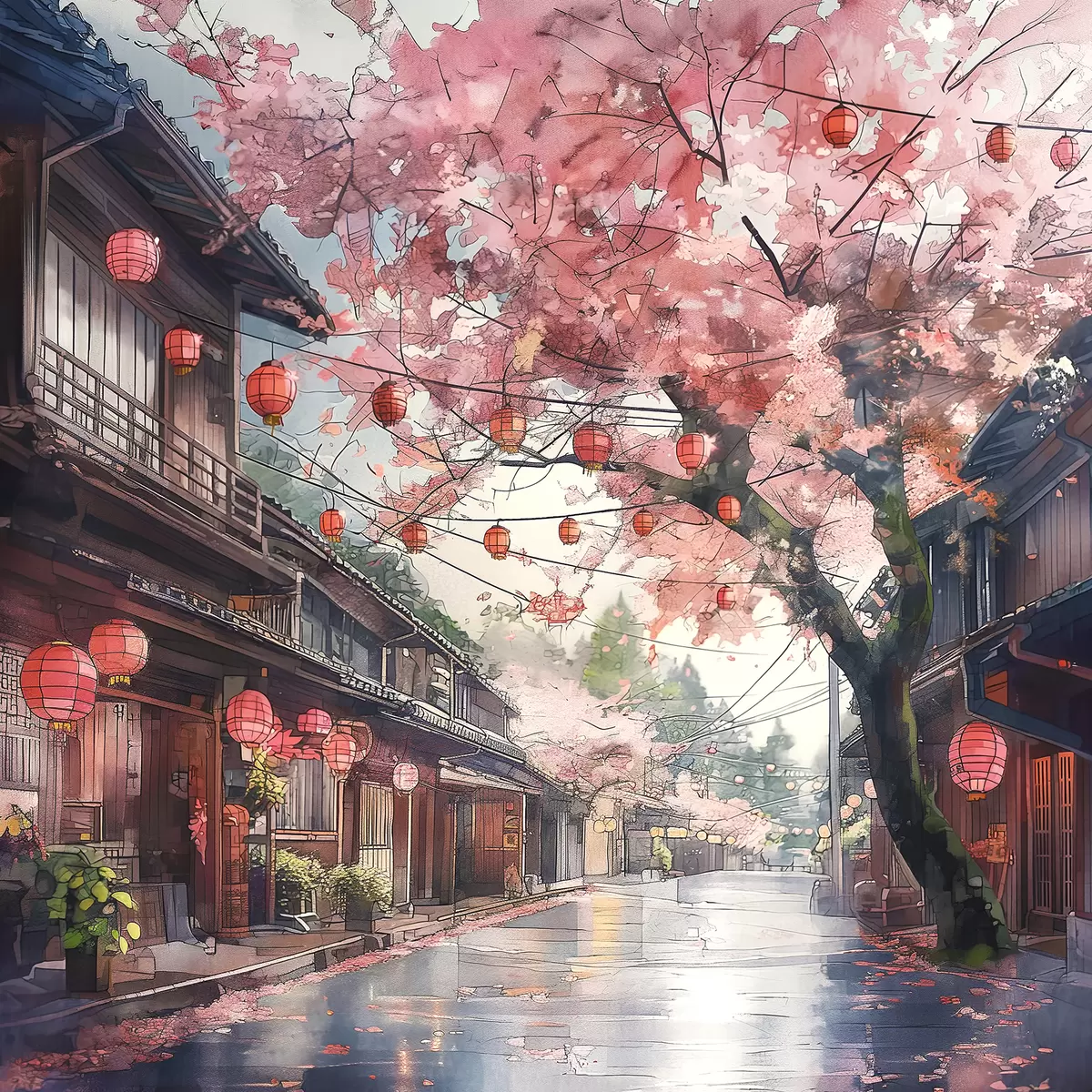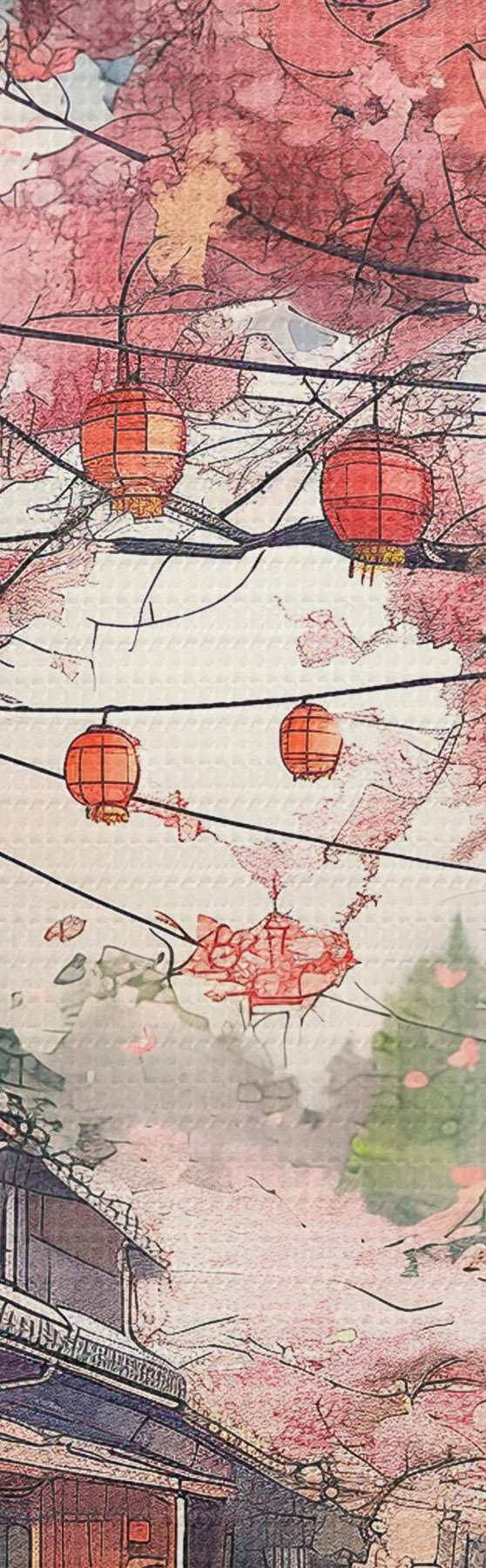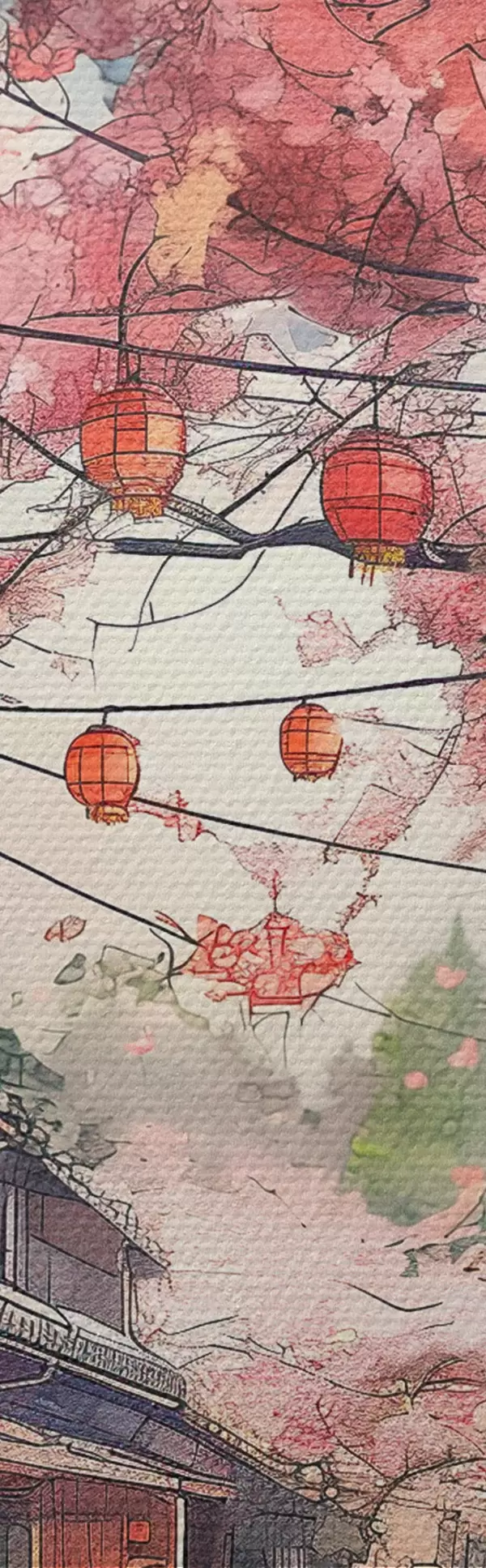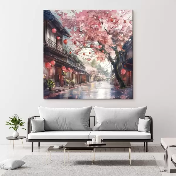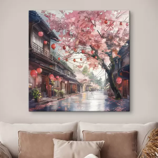 Quadri Strada giapponese con ciliegi in fiore, architettura orientale, lanterne Nr s39774
