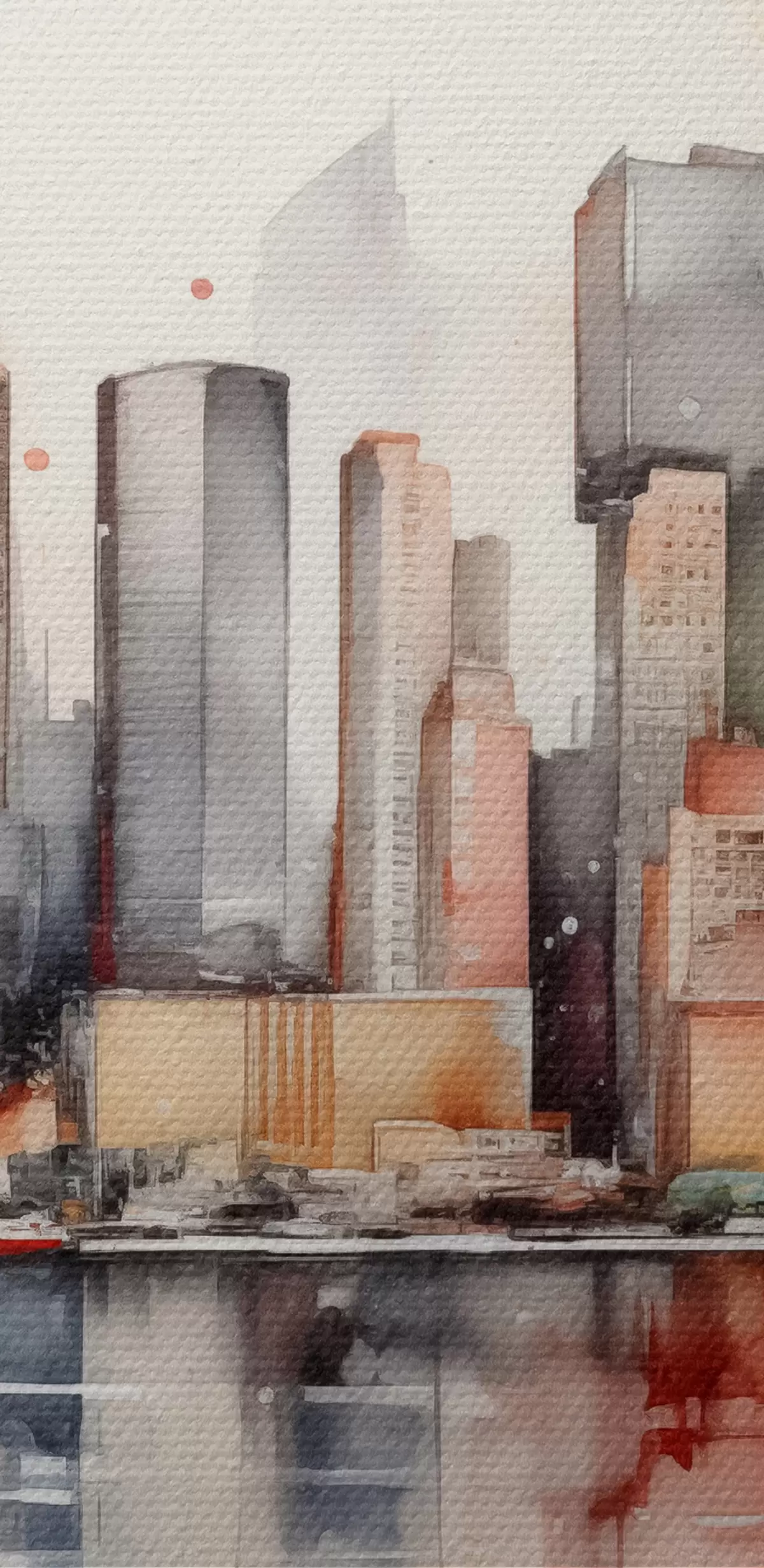 carta da parati Vista di New York City, sagome di edifici, acquerello nr. s39828