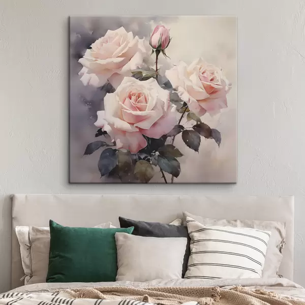 Quadri Rose bianche rosa su sfondo scuro acquerello Nr s39927