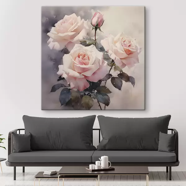 Quadri Rose bianche rosa su sfondo scuro acquerello Nr s39927
