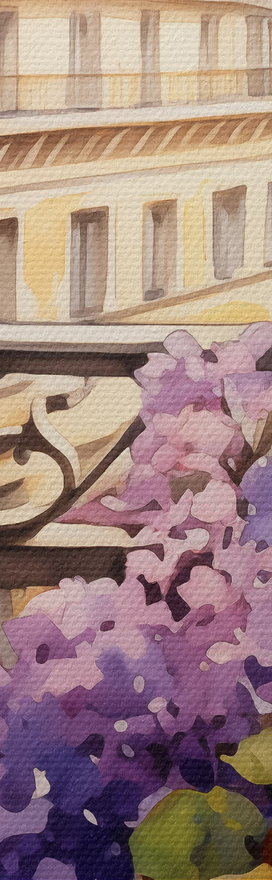carta da parati Violette in un vaso su un balcone a Parigi acquerello nr. s39931