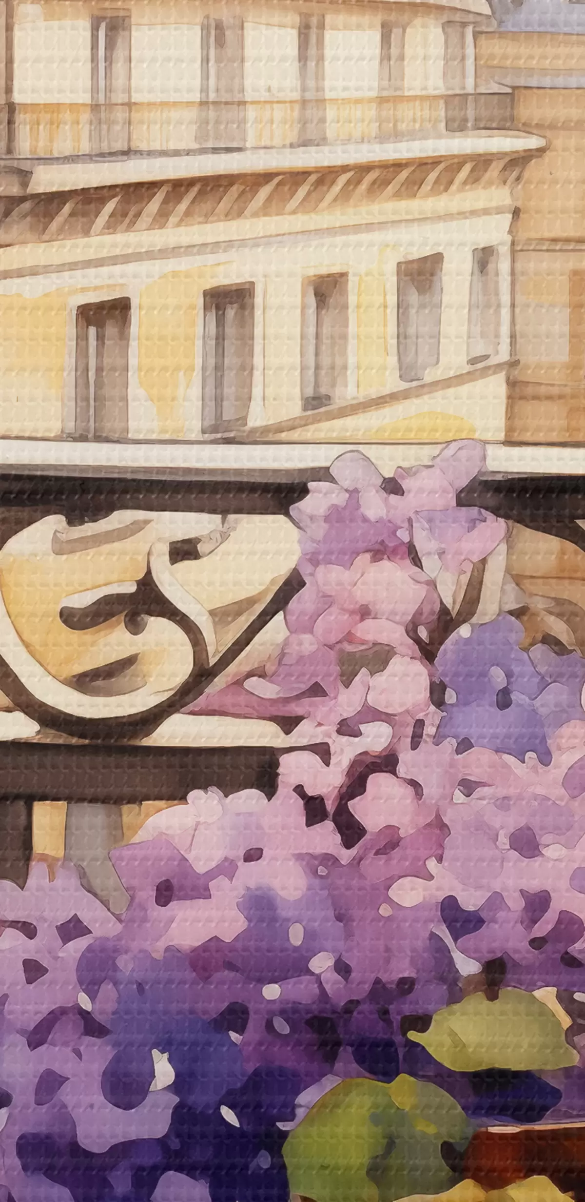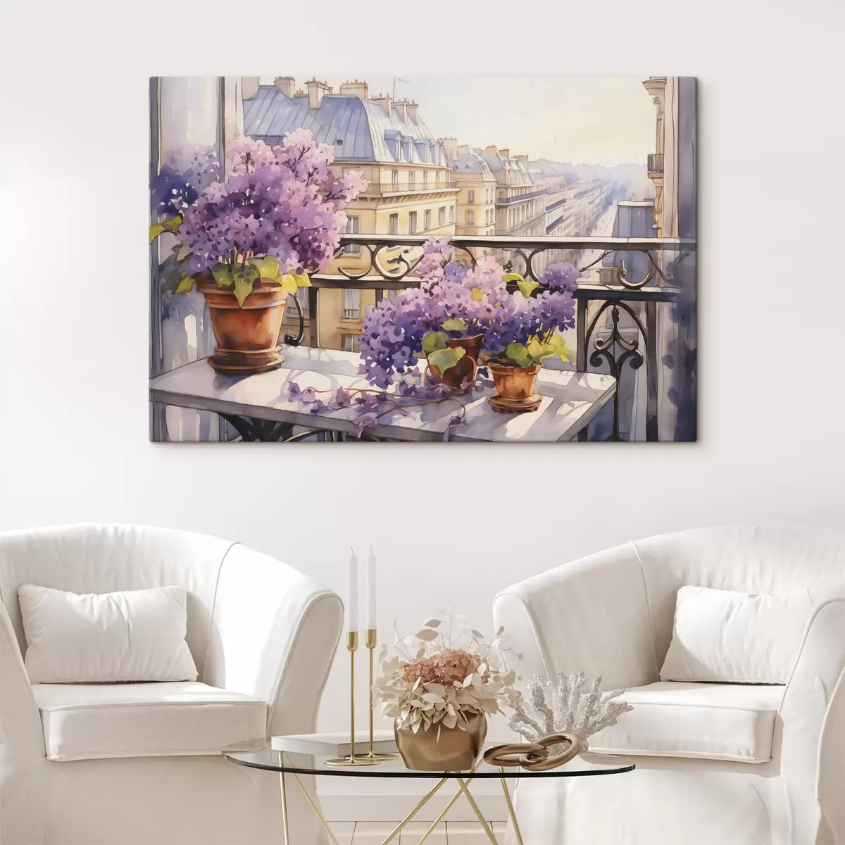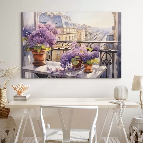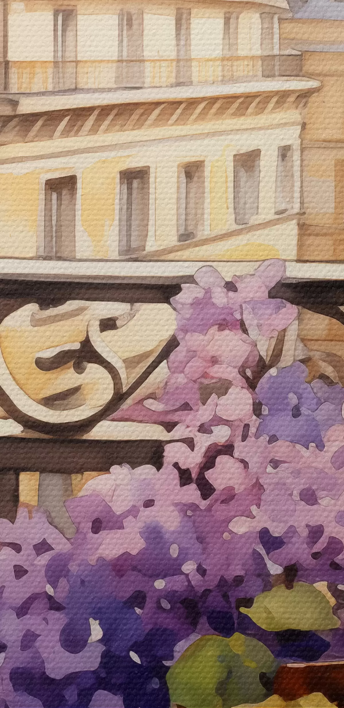 Quadri Violette in un vaso su un balcone a Parigi acquerello Nr s39931