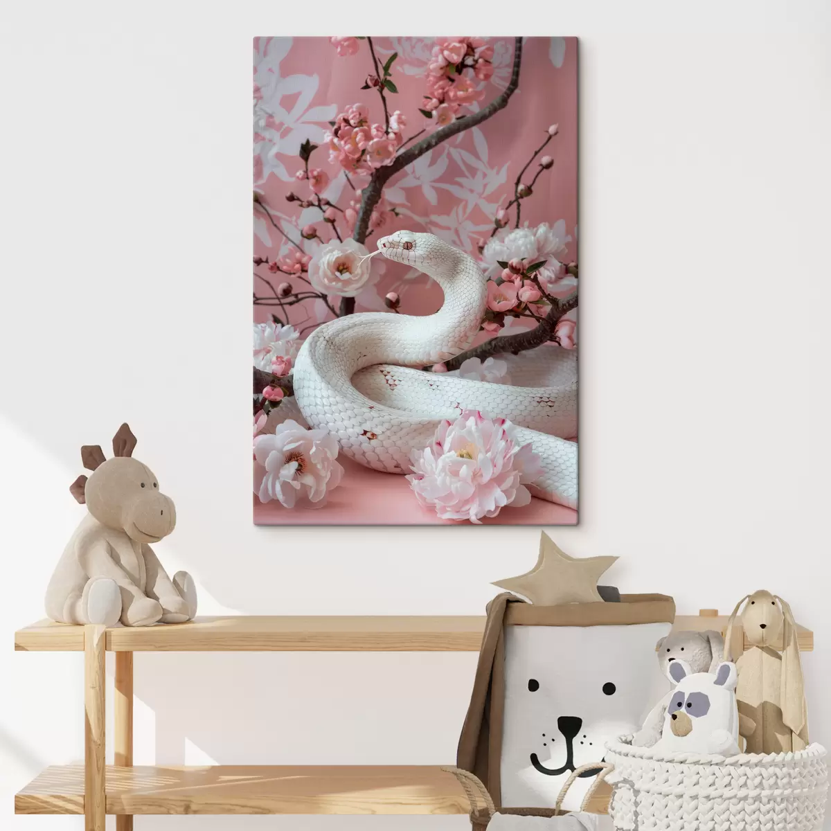 Quadri Serpente bianco e fiori rosa Nr s39941
