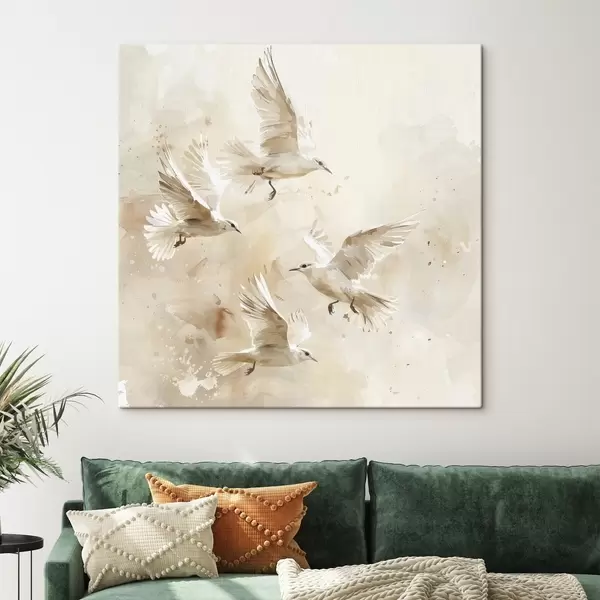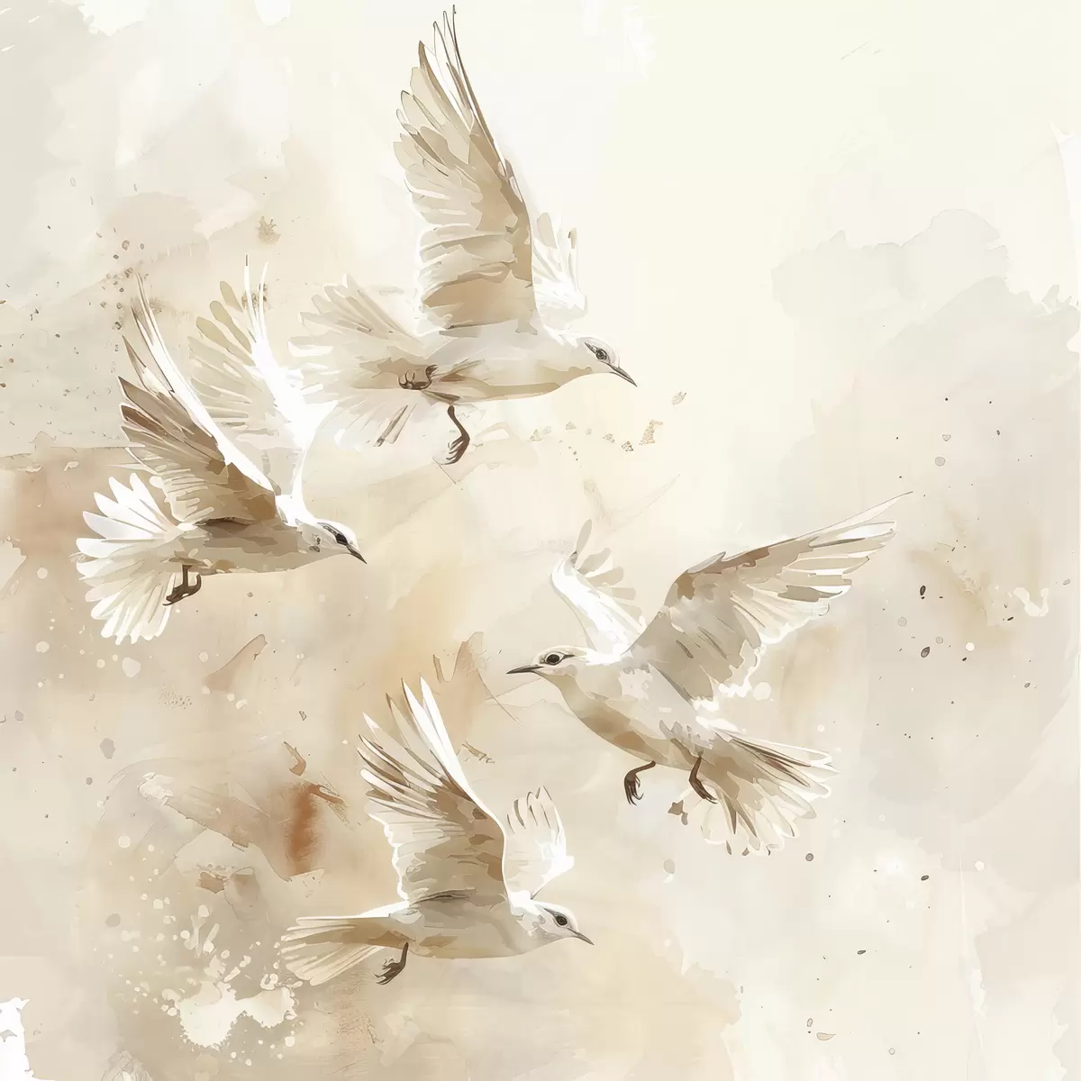 Quadri Uccelli in volo ad acquerello, colori pastello tenui, astrazione Nr s39973