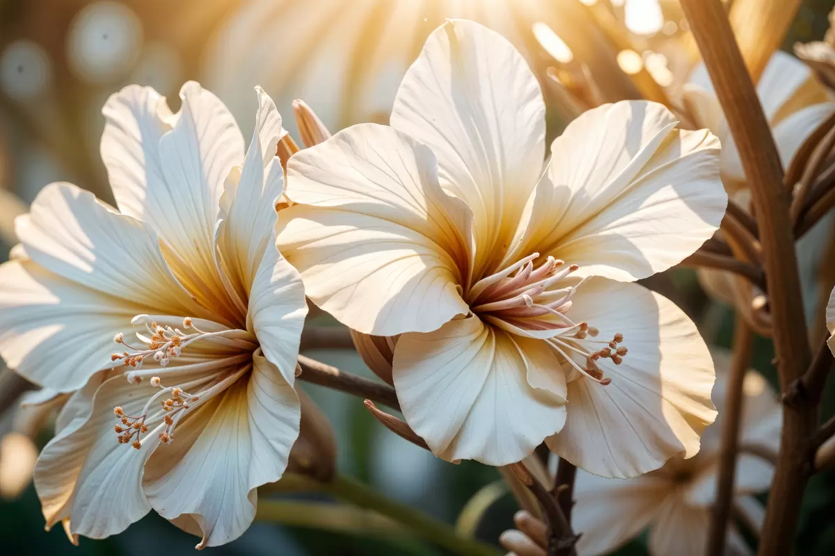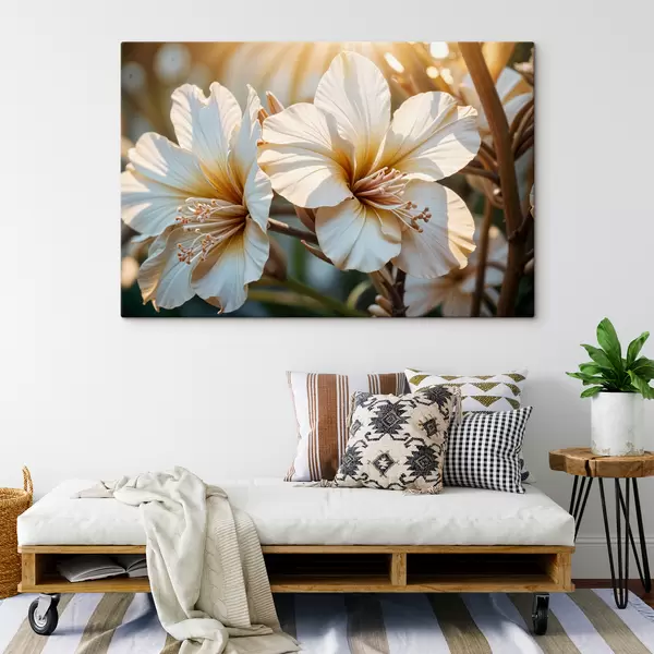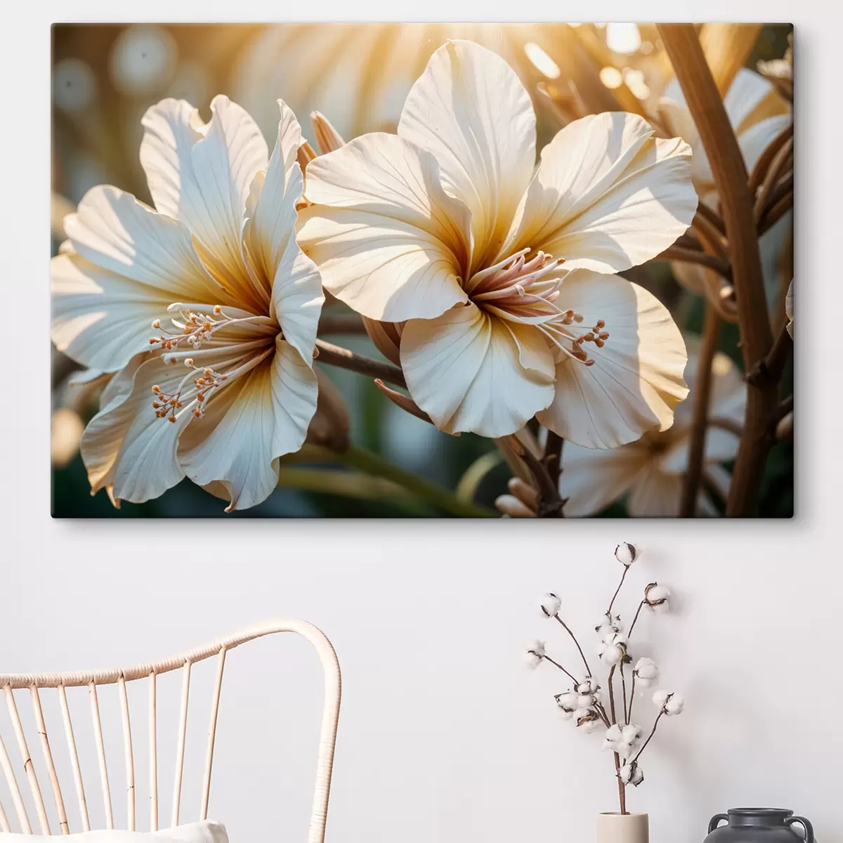 Quadri Fiori di ibisco bianchi e arancioni in fiore, con sfondo soft focus Nr s40035