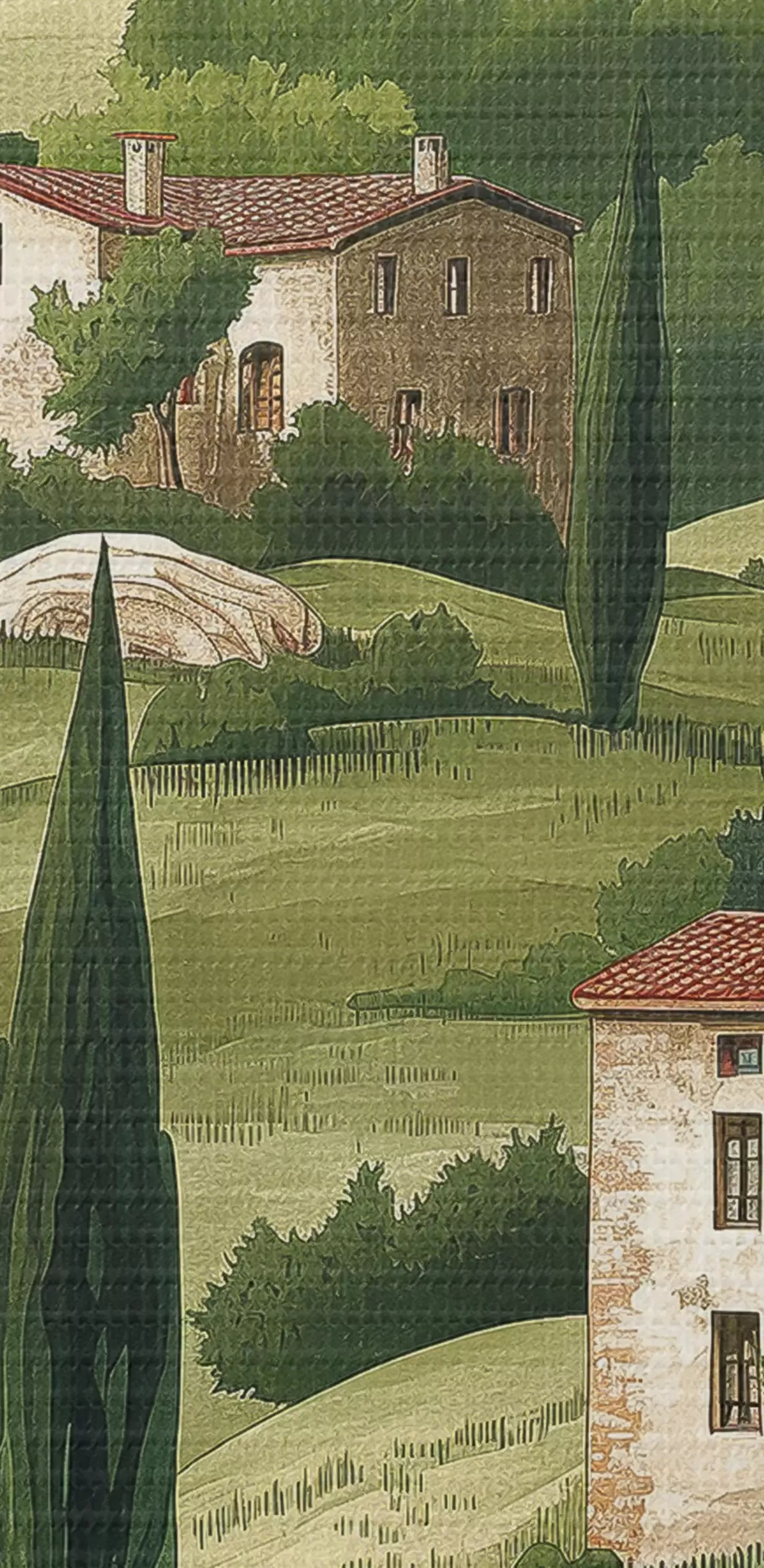 carta da parati Paesaggio con case d'epoca, colori verde pastello, disegno acrilico, rustico nr. s40080