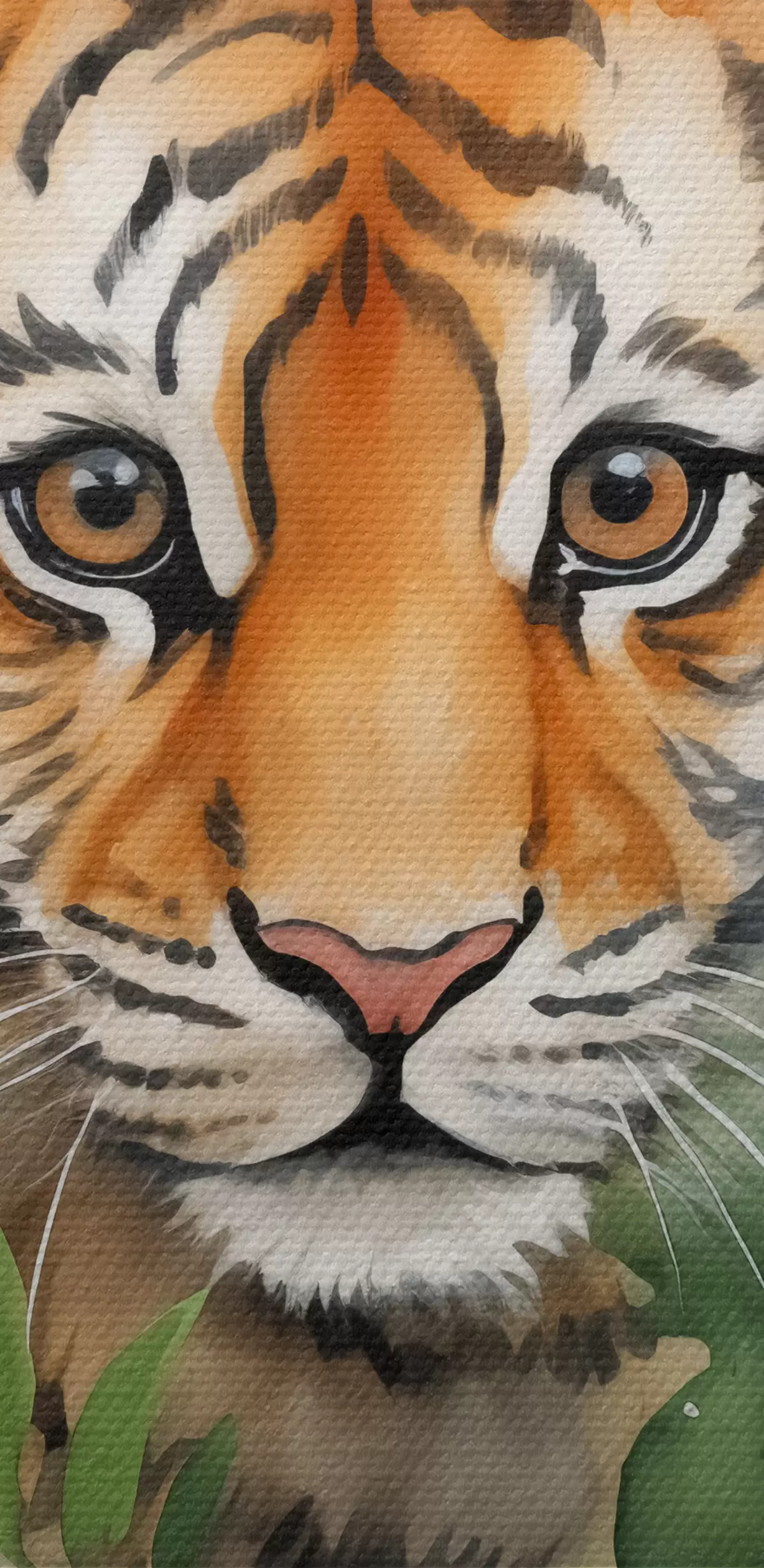 Quadri Ritratto di una tigre in foglie tropicali acquerello Nr s40090