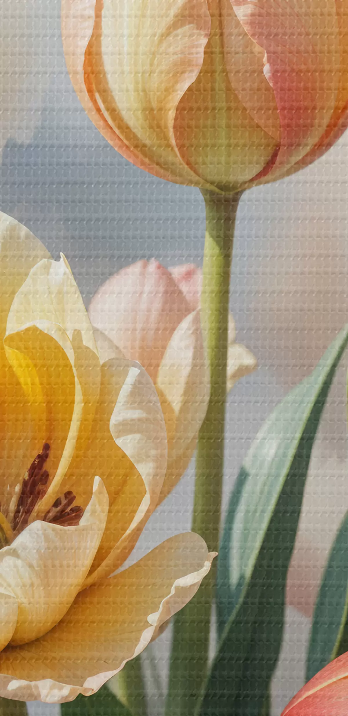 carta da parati Tulipani colorati in varie tonalità di rosso, arancione e giallo su uno sfondo chiaro nr. s40167