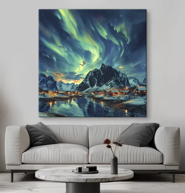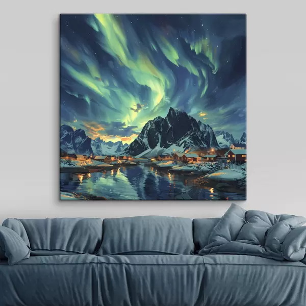 Quadri Isole Lofoten, luci della notte, villaggio invernale Nr s40299