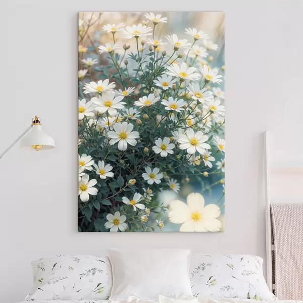 Quadri Un campo di fiori di margherita bianca con fogliame verde, su uno sfondo sfocato Nr s40413