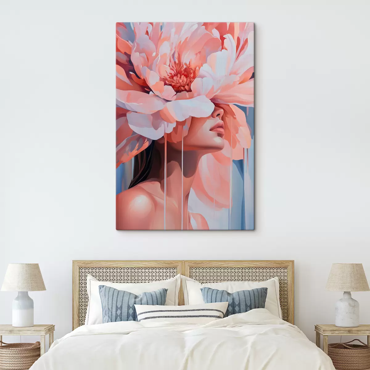 Quadri Ritratto di una donna con un grande fiore rosa sulla testa Nr s40430