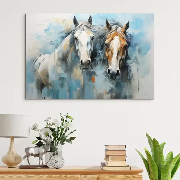 Quadri Cavalli dipinto astratto, colore bianco, blu, marrone Nr s40493
