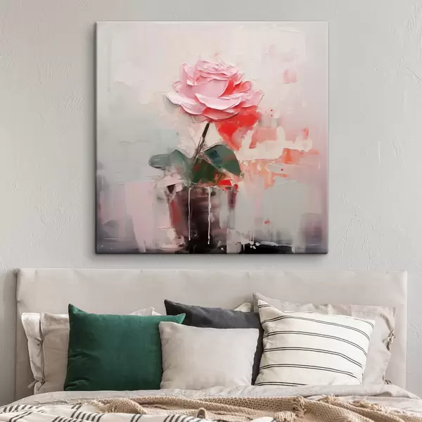 Quadri Rosa astratta in un vaso, colore grigio, rosa, rosso Nr s40515