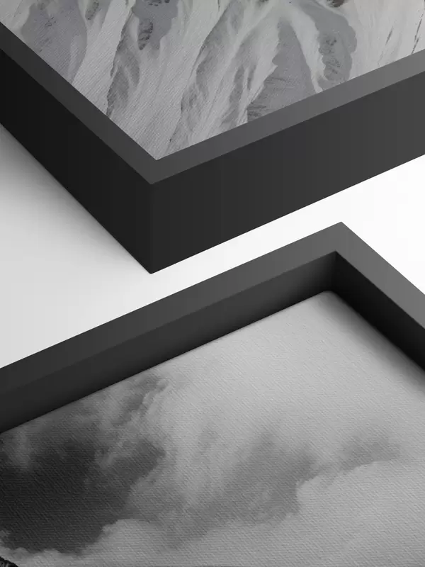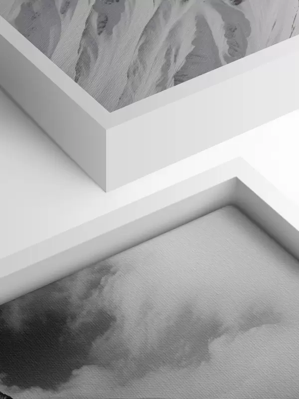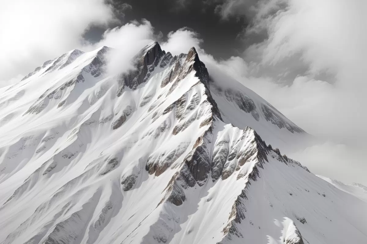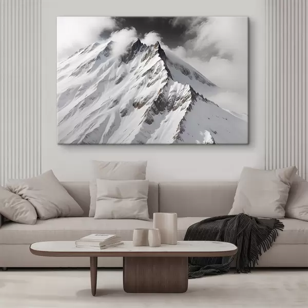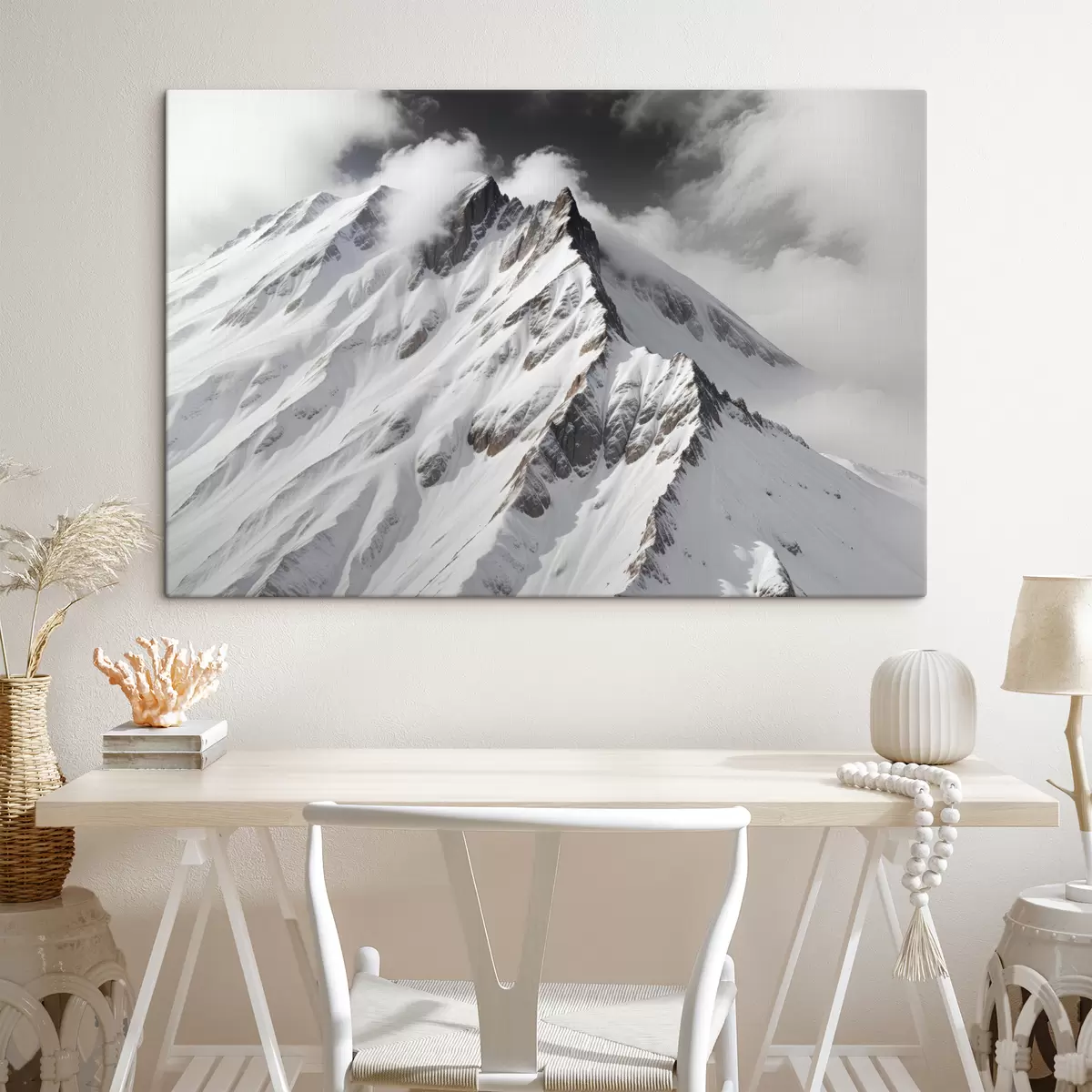 Quadri Cime innevate di montagne bianche e nere in un paesaggio nuvoloso e spettacolare Nr s40553
