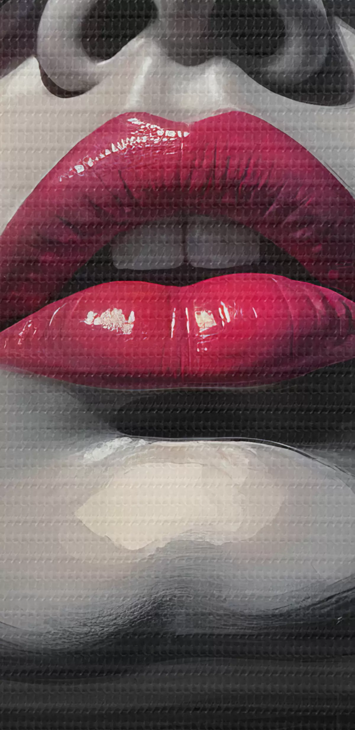 carta da parati Ritratto astratto di una giovane donna con occhiali da sole, labbra rosa, forme astratte e spruzzi di rosa  nr. s40558
