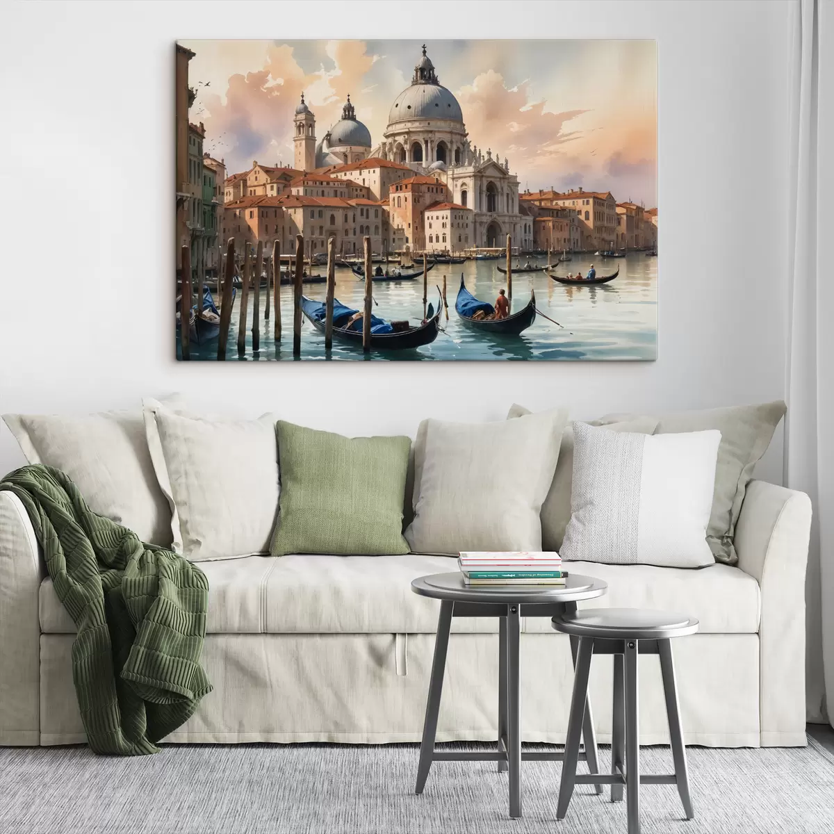 Quadri Un dipinto panoramico ad acquerello raffigurante la vista del Canal Grande a Venezia, Italia Nr s40573