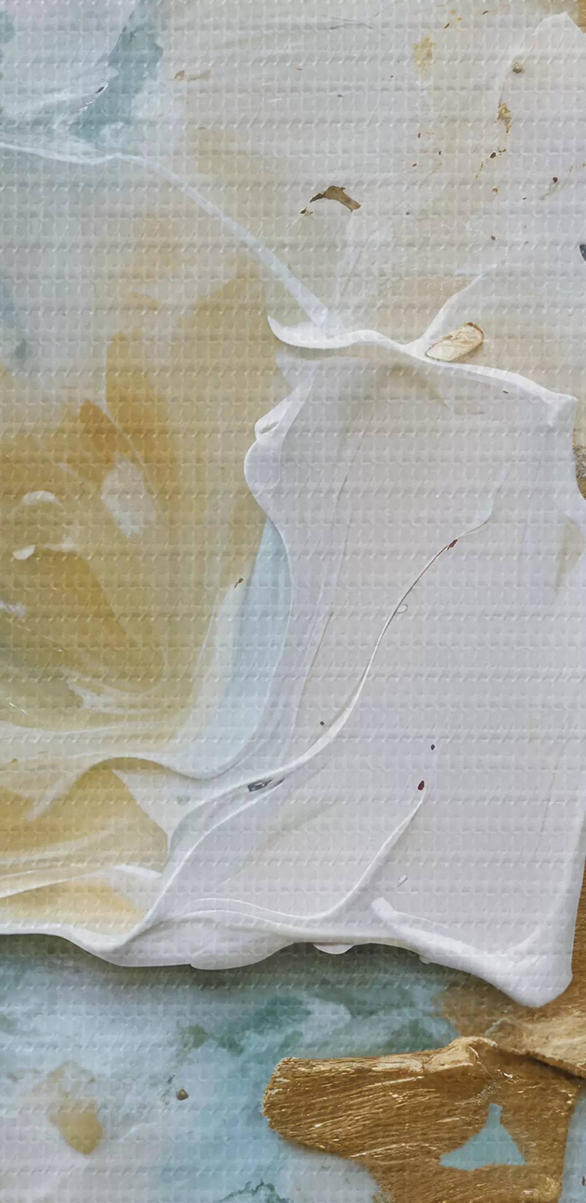 carta da parati Vernice scrostata con strati di colori bianco, blu e giallo che creano una stampa astratta e strutturata nr. s40577