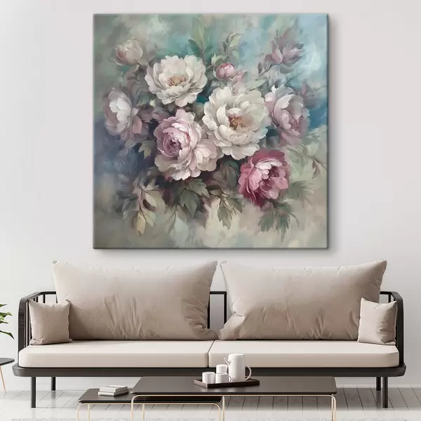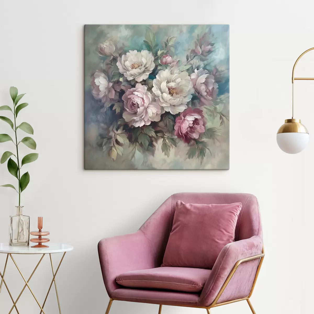 Quadri Bouquet di peonie rosa e bianche in pittura ad olio Nr s40582