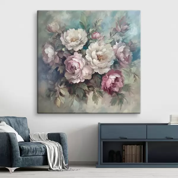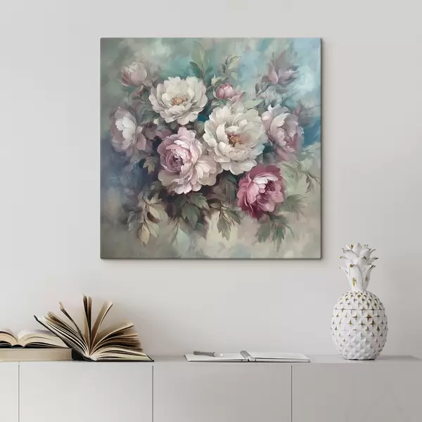 Quadri Bouquet di peonie rosa e bianche in pittura ad olio Nr s40582