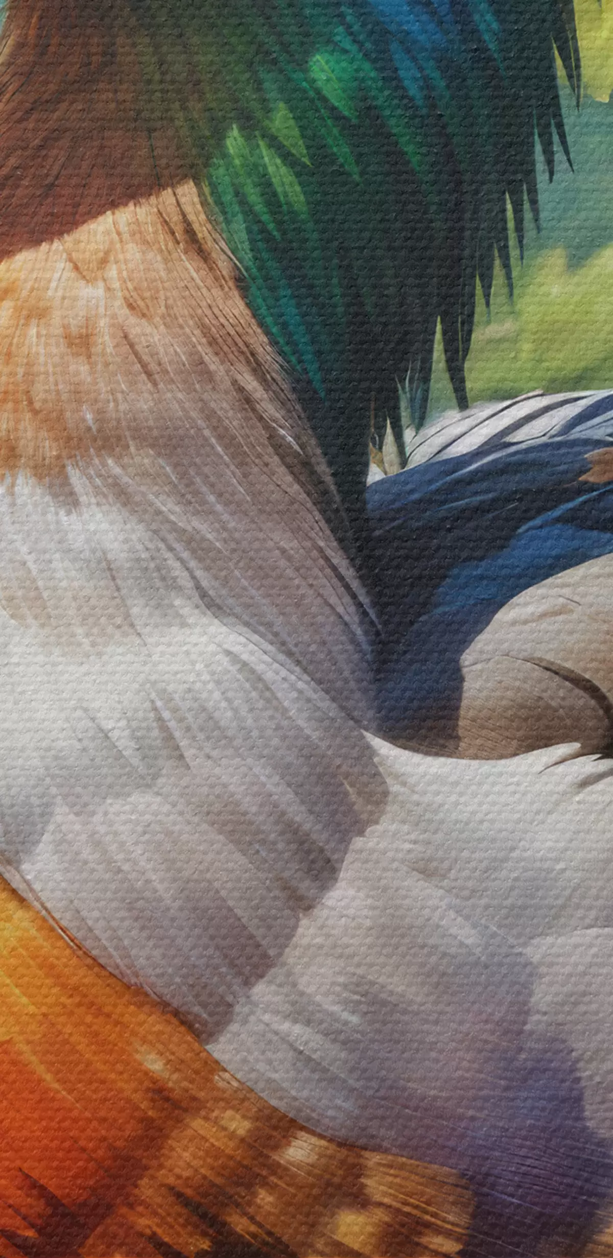 Sono disponibili tre tipi di materiale per l'ordinazione: Economic Canvas - materiale denso e resistente per la stampa digitale, identico alla tela del pittore, superficie impermeabile, riproduzione realistica dei dettagli, materiale a grana media. Premium Canvas - la trama ricorda la tela di un pittore (piccoli fili intrecciati). Riproduzione morbida e dettagliata dell'immagine su una superficie opaca. Eco-Premium - tessuto di alta qualità in 100% cotone. Grazie alle fibre naturali di cotone, il materiale è durevole e resistente all'usura. Eccellente riproduzione dei colori e dei dettagli.