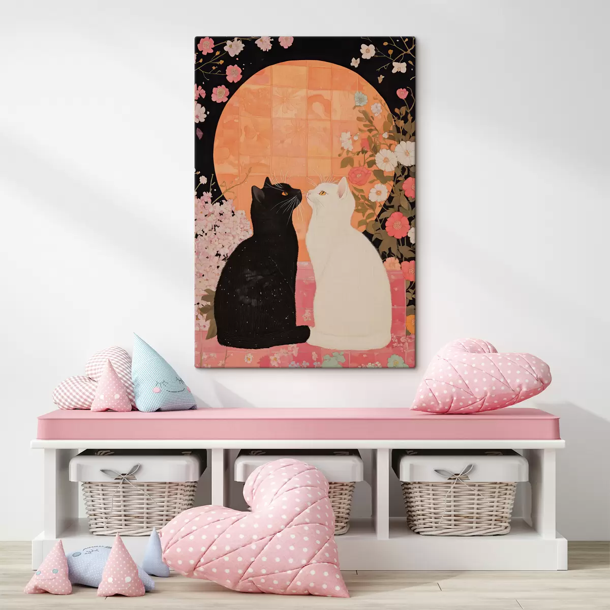Quadri Gatto nero e gatto bianco che si guardano con simpatia al tramonto Nr s40669