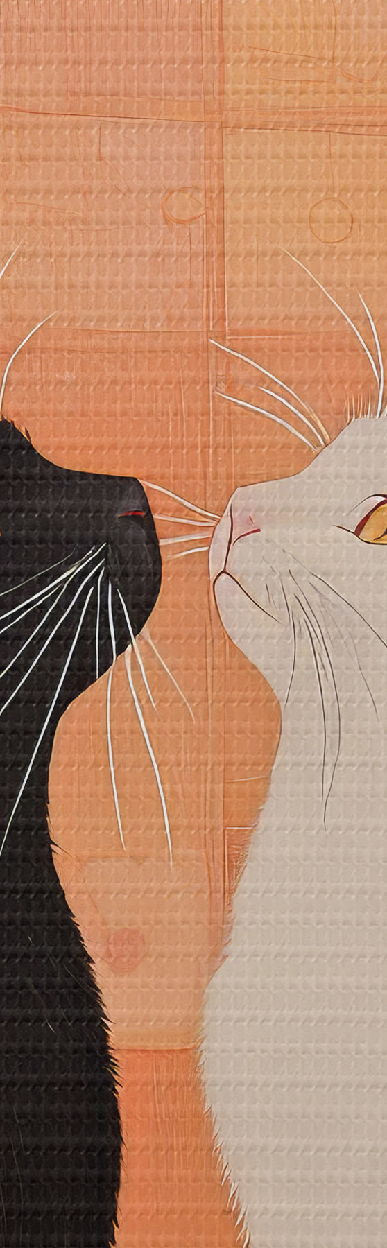 carta da parati Gatto nero e gatto bianco che si guardano con simpatia al tramonto nr. s40669