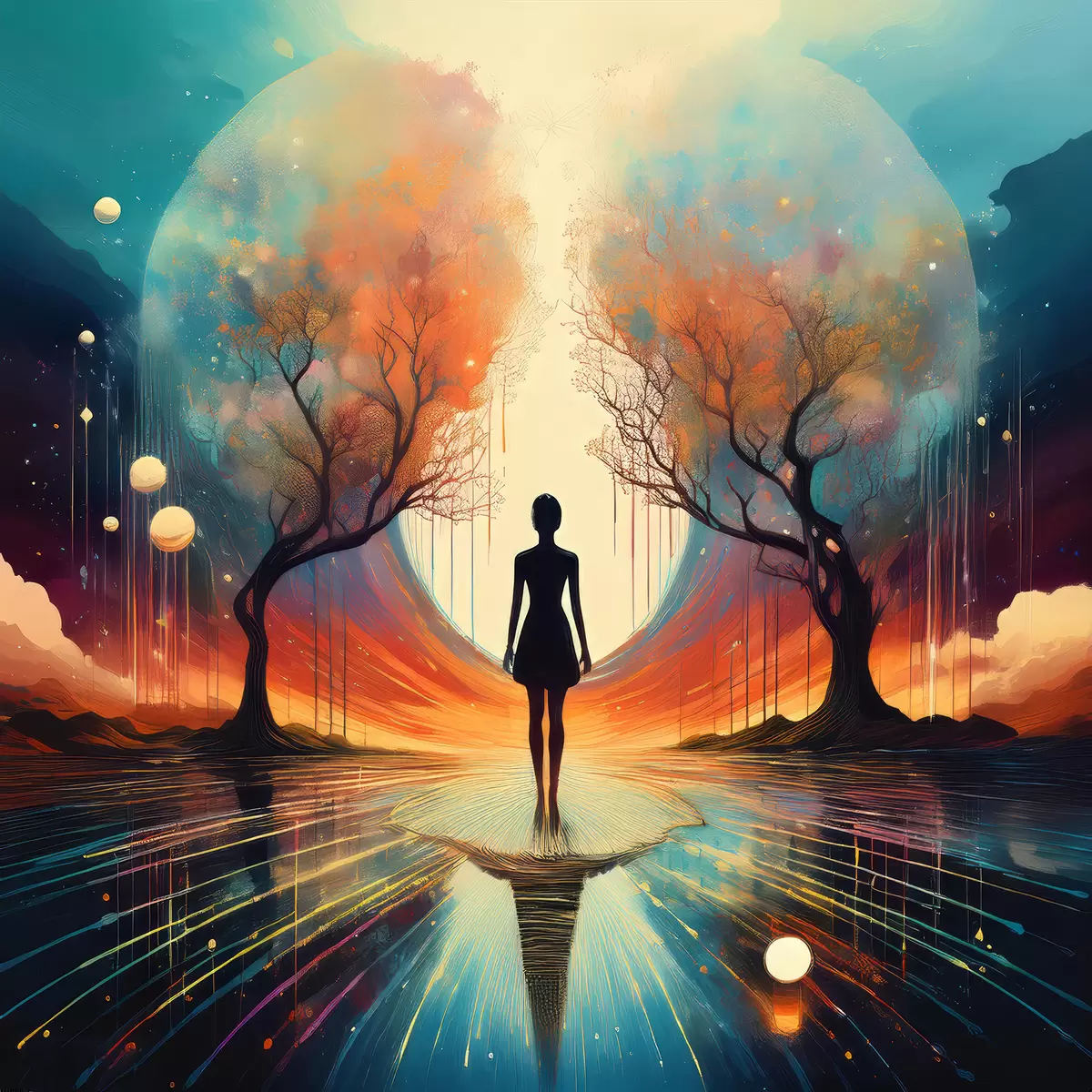 Quadri silhouette tra gli alberi, conoscenza di sé, riflessione su di sé Nr s40713