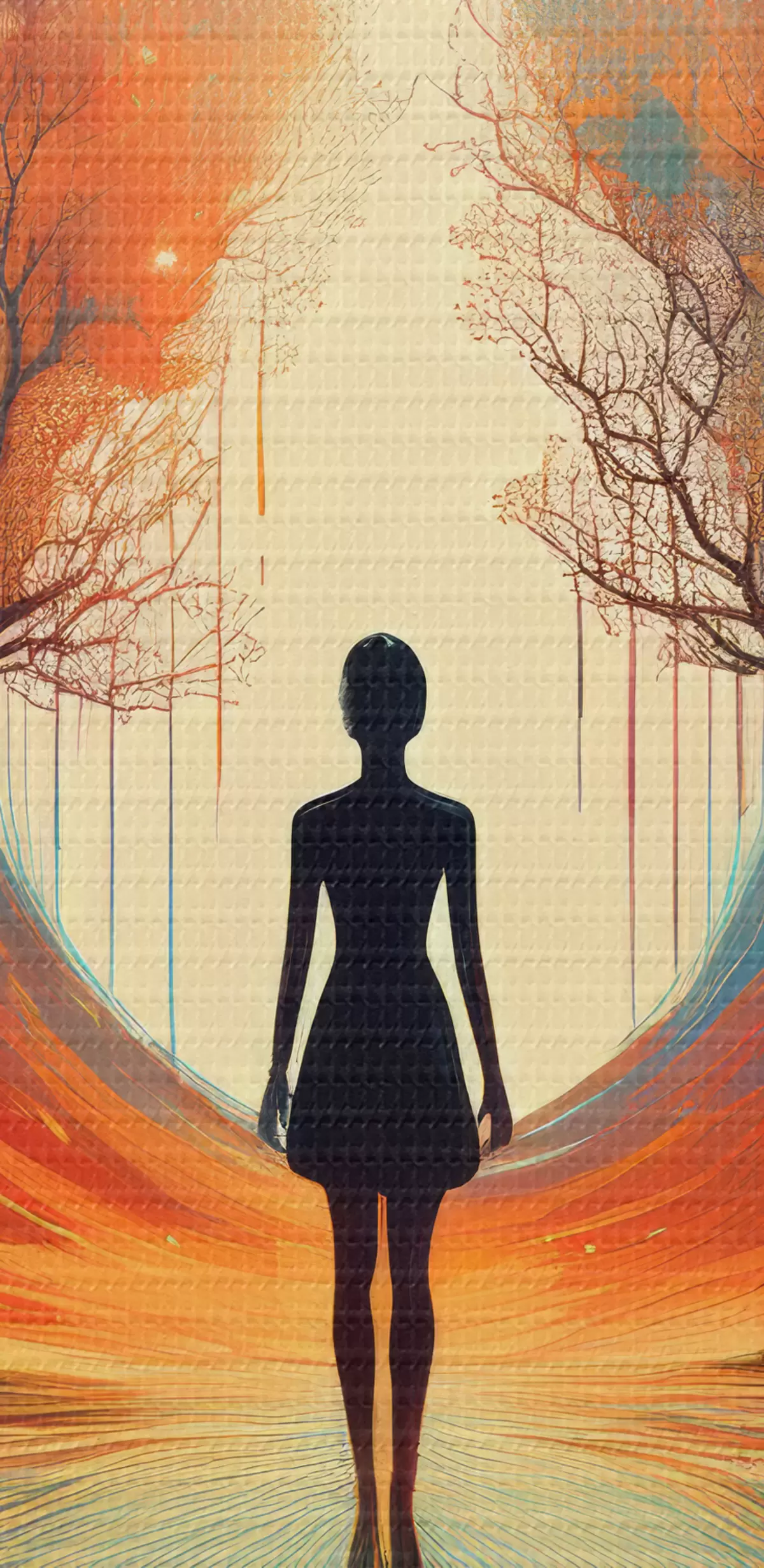 carta da parati silhouette tra gli alberi, conoscenza di sé, riflessione su di sé nr. s40713