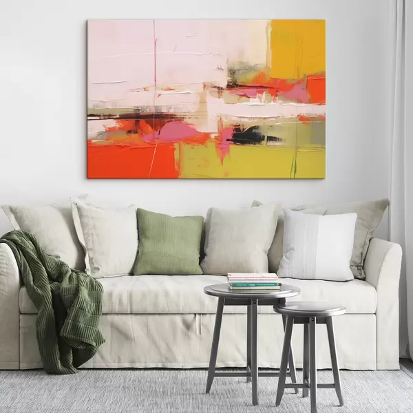 Quadri Tratti di pittura astratta, colore rosso, giallo, verde, arancione Nr s40747