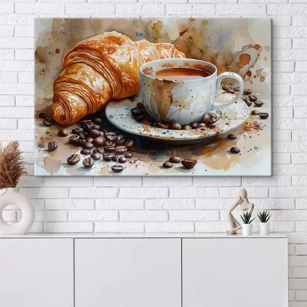 Quadri Croissant, mattina, croissant e tazza di caffè, acquerello Nr s40782