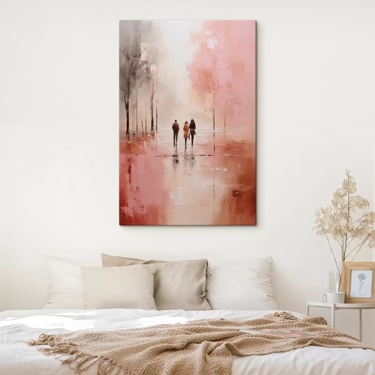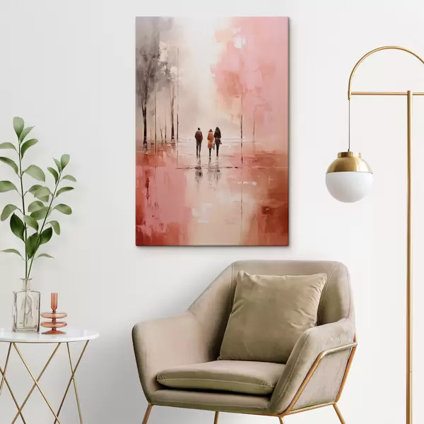Quadri Persone che camminano nel parco astratto, colore rosa rosso Nr s40802