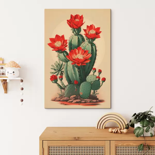 Quadri Cactus in fiore con fiori rossi Nr s40806