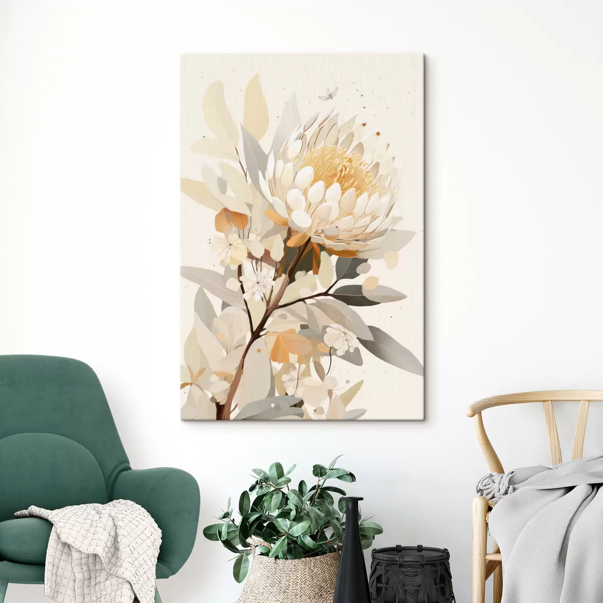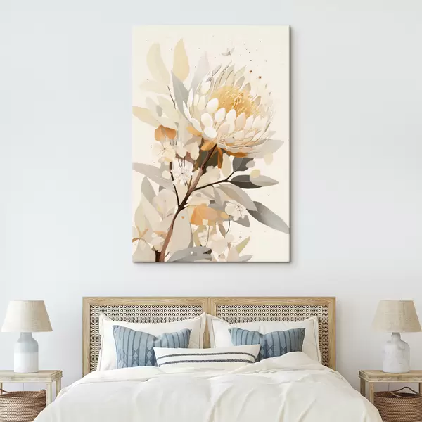 Quadri Fiore di protea in una tavolozza di colori beige tenui, astrazione floreale Nr s40819
