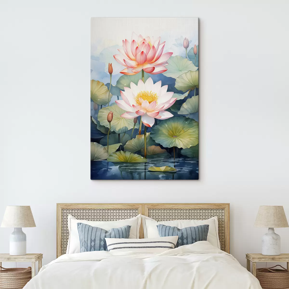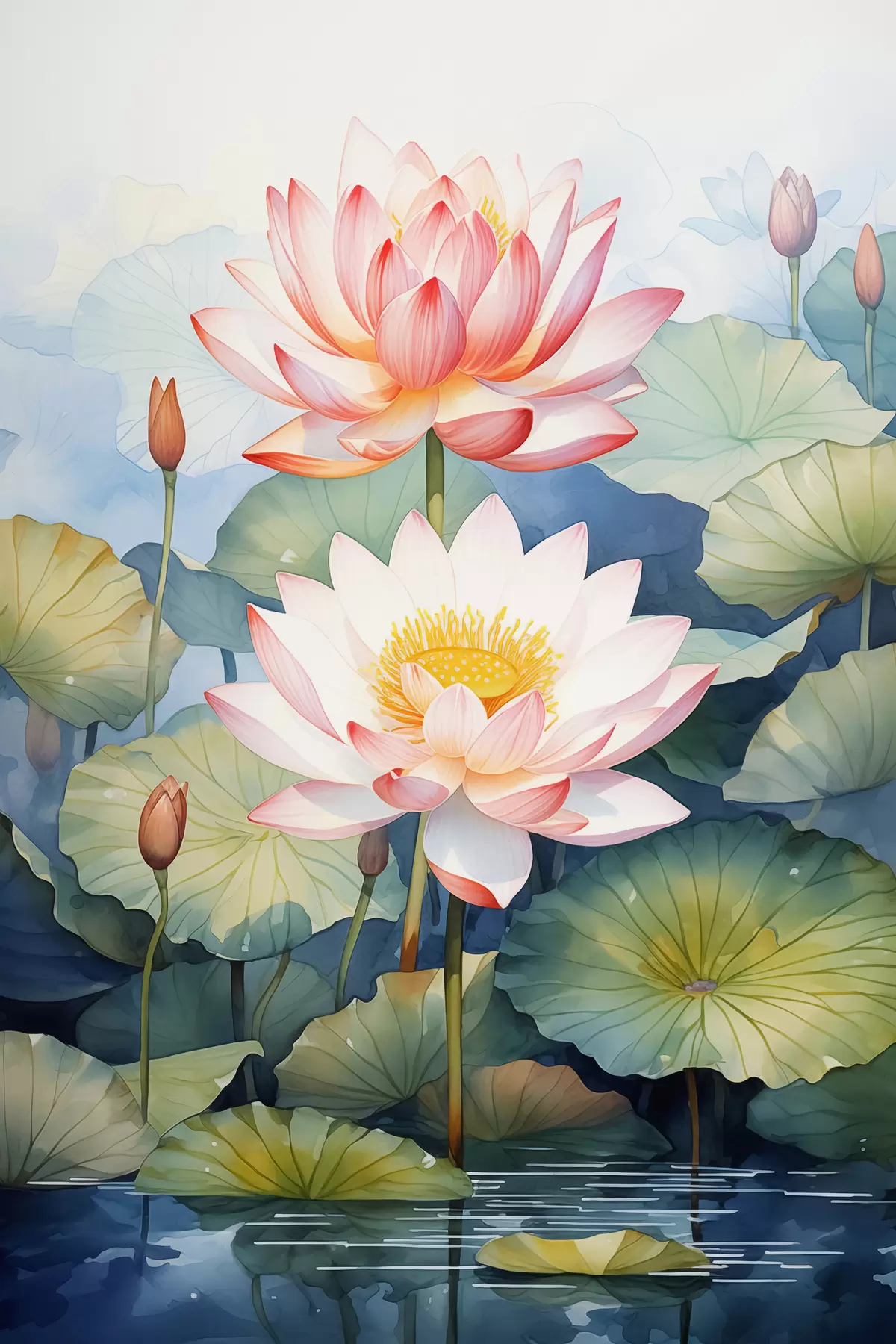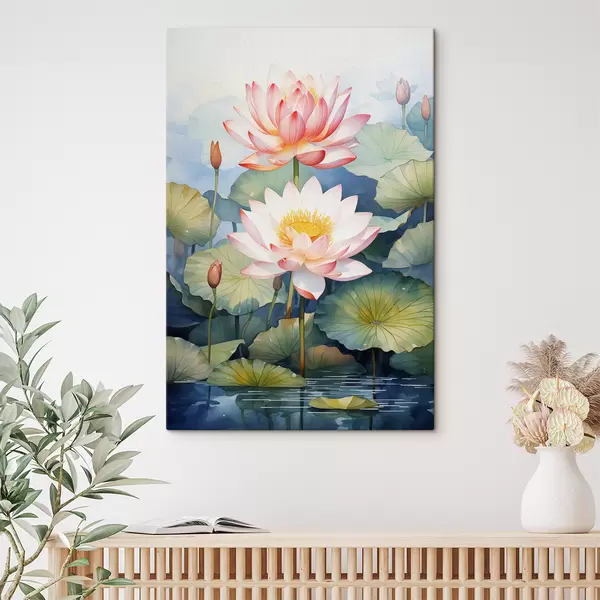 Quadri Fiori di ninfea in uno stagno acquerello Nr s40888