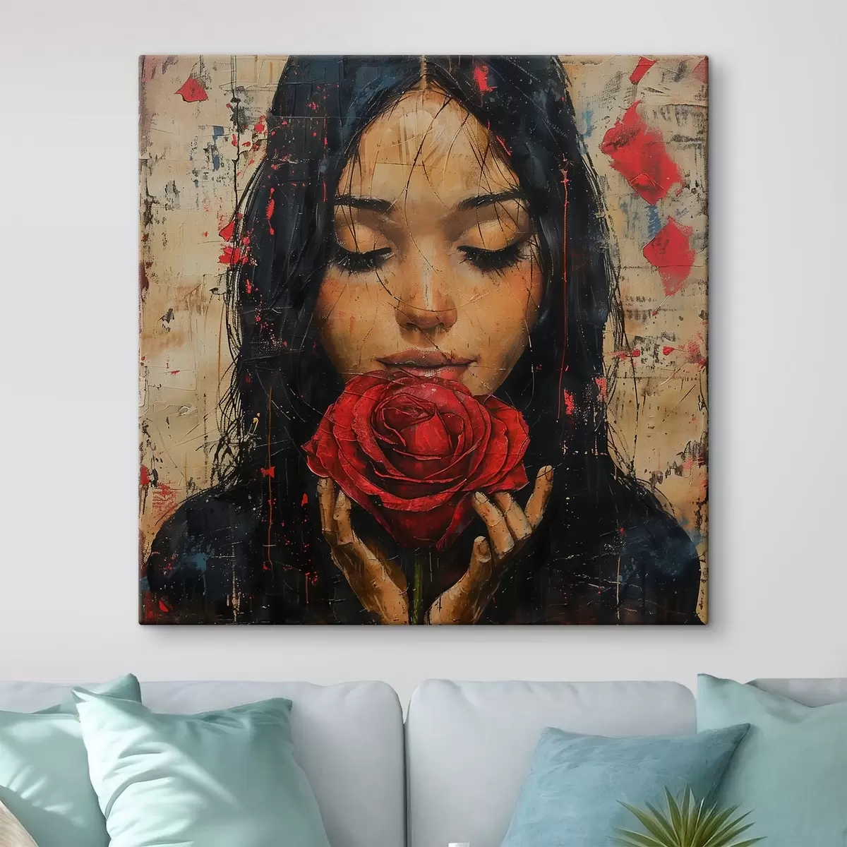 carta da parati Ragazza con una rosa rossa nr. s40898