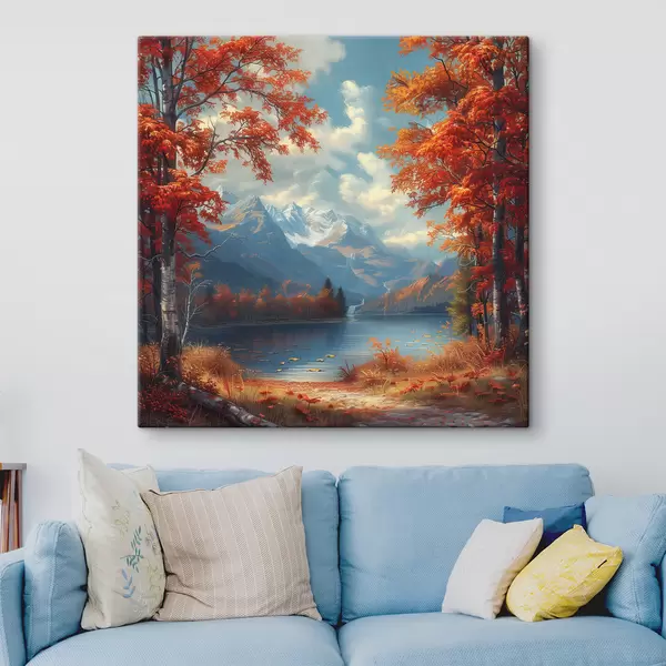 Quadri Paesaggio autunnale sullo sfondo delle montagne vicino a uno stagno Nr s40903