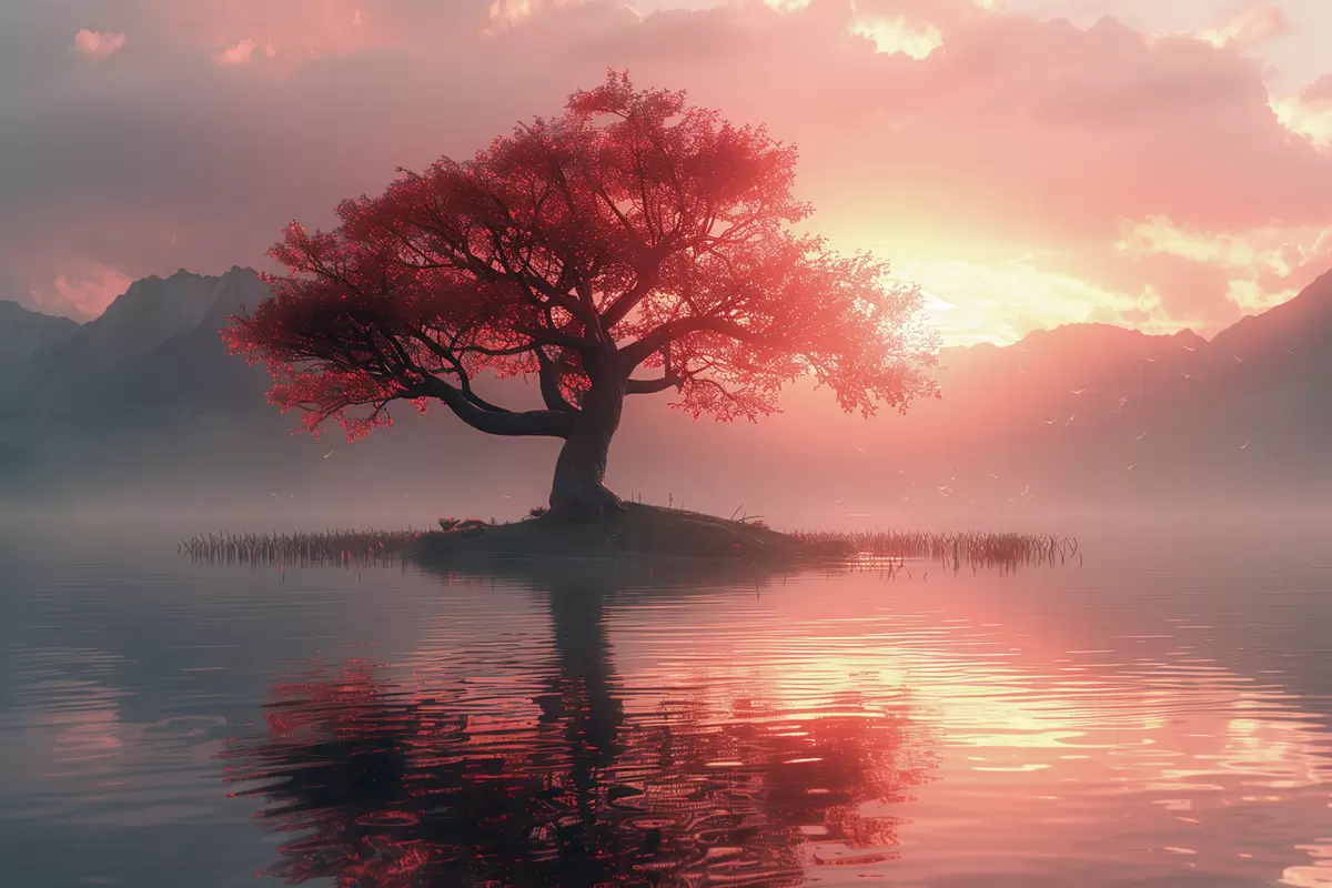 carta da parati Albero vicino allo stagno al tramonto nr. s40934