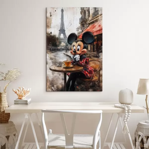 Quadri Ragazza di Topolino che beve un caffè davanti alla Torre Eiffel a Parigi Nr s40972
