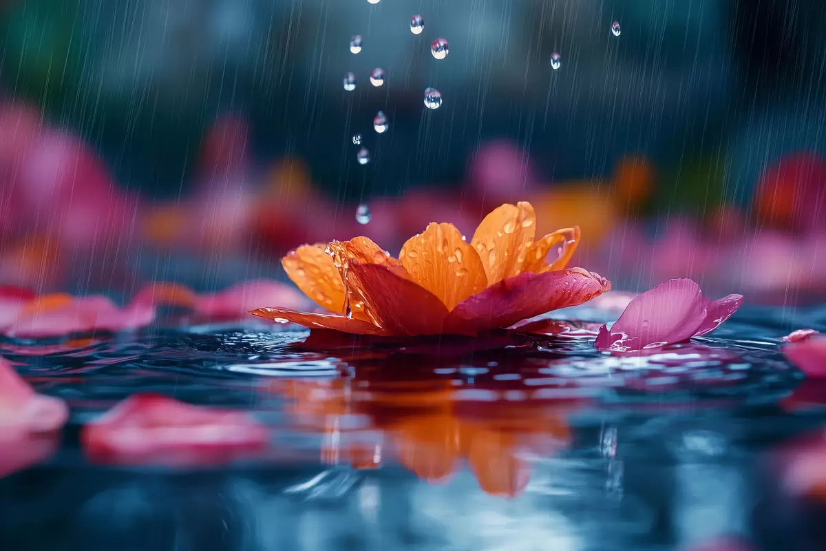 Quadri Una ninfea con gocce di pioggia Nr s40977